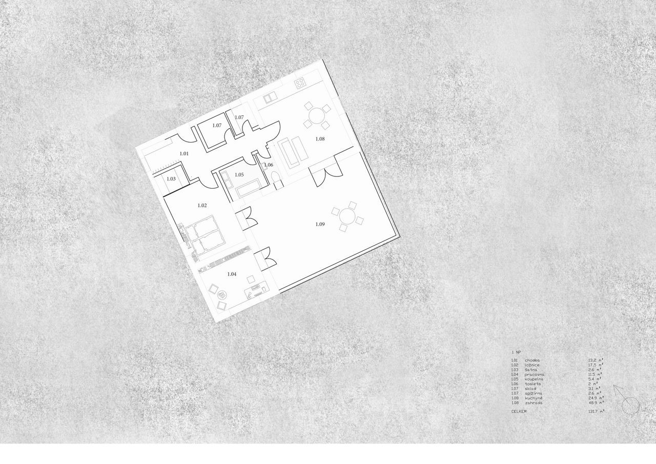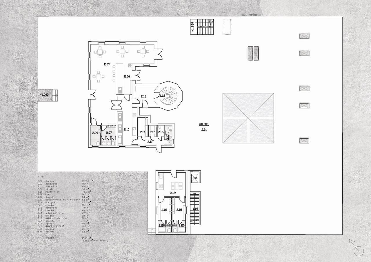 Eliška Kovaříková, Přestavba majáku na hotel v Syrakusách, Itálie, půdorys 1. PP – foto
