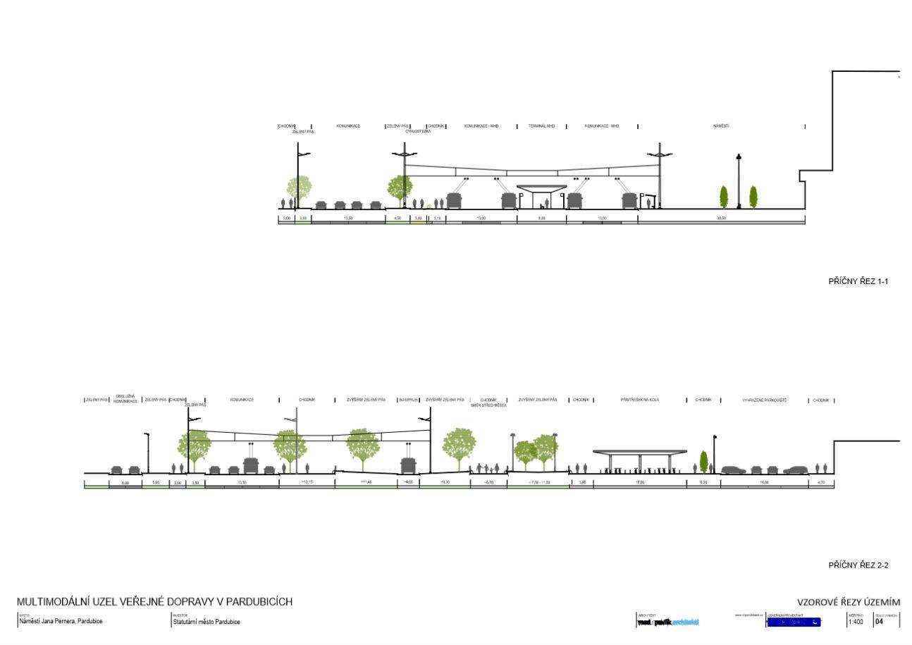 Multimodální uzel veřejné dopravy v Pardubicích, řezy, Med Pavlík architekti s.r.o.