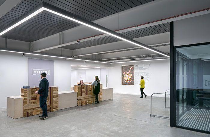 Původní konstrukční rám průmyslové haly byl ponechán a do stavby zakomponován tak, aby zesílil její estetiku odkazují na industriální historii místa. V interiéru je tento odkaz také patrný, především však v atriovém společenském prostoru s dvojí výškou, kde se nacházejí kanceláře, zkušební prostory a zasedací místnost.