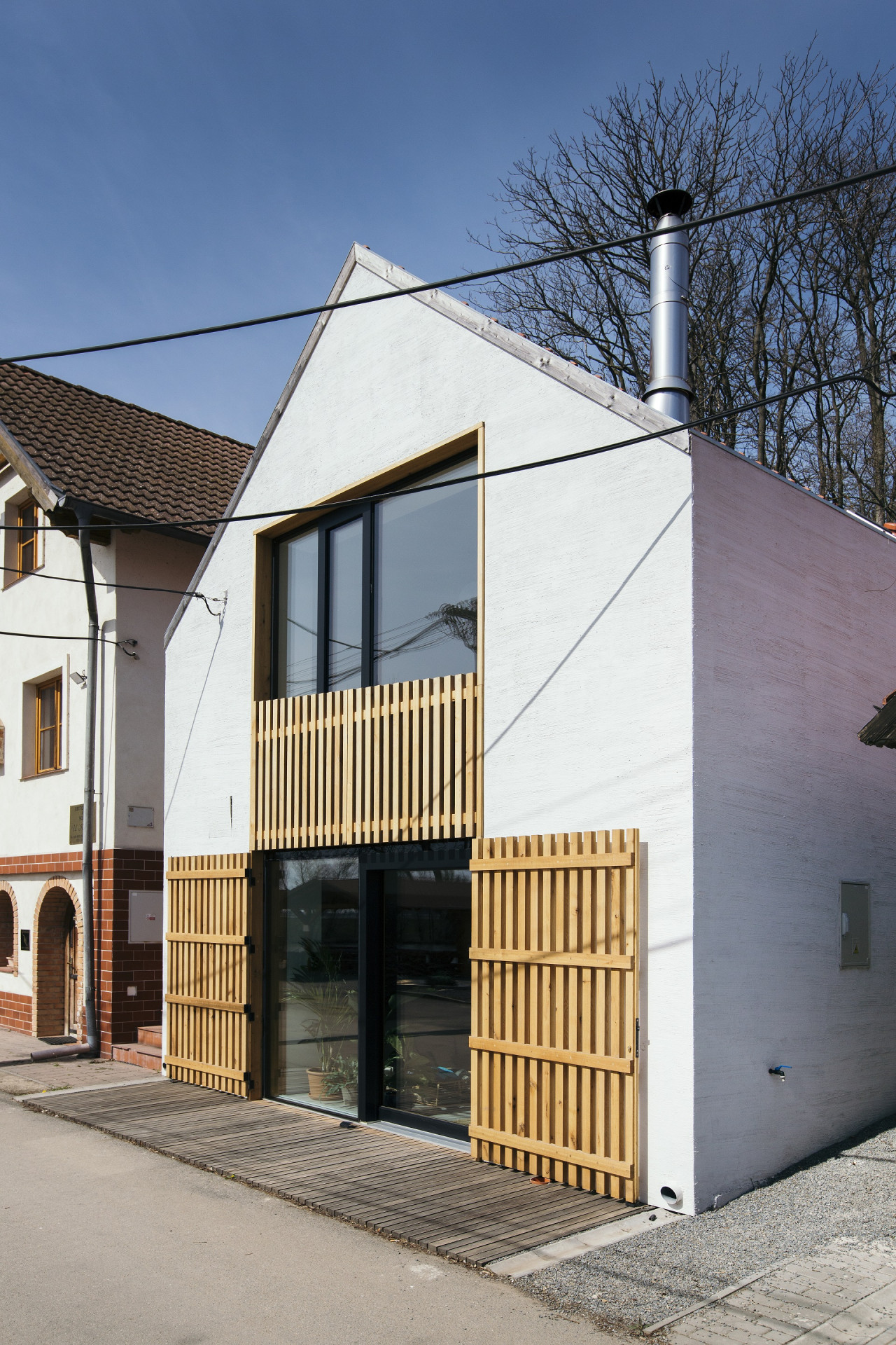 Rodinný dům na okraji obce v ulici s tematickým názvem Sklepní vznikl přestavbou vinného sklepa ze 70. let. Ačkoliv se objekt proměnil k nepoznání, stále velmi úzce reaguje na místní tradici a respektuje původní zástavbu. „Celková proporce i určující prvky exteriéru vychází z typologie původních viničních domů,“ komentuje realizaci architekt František Brychta.