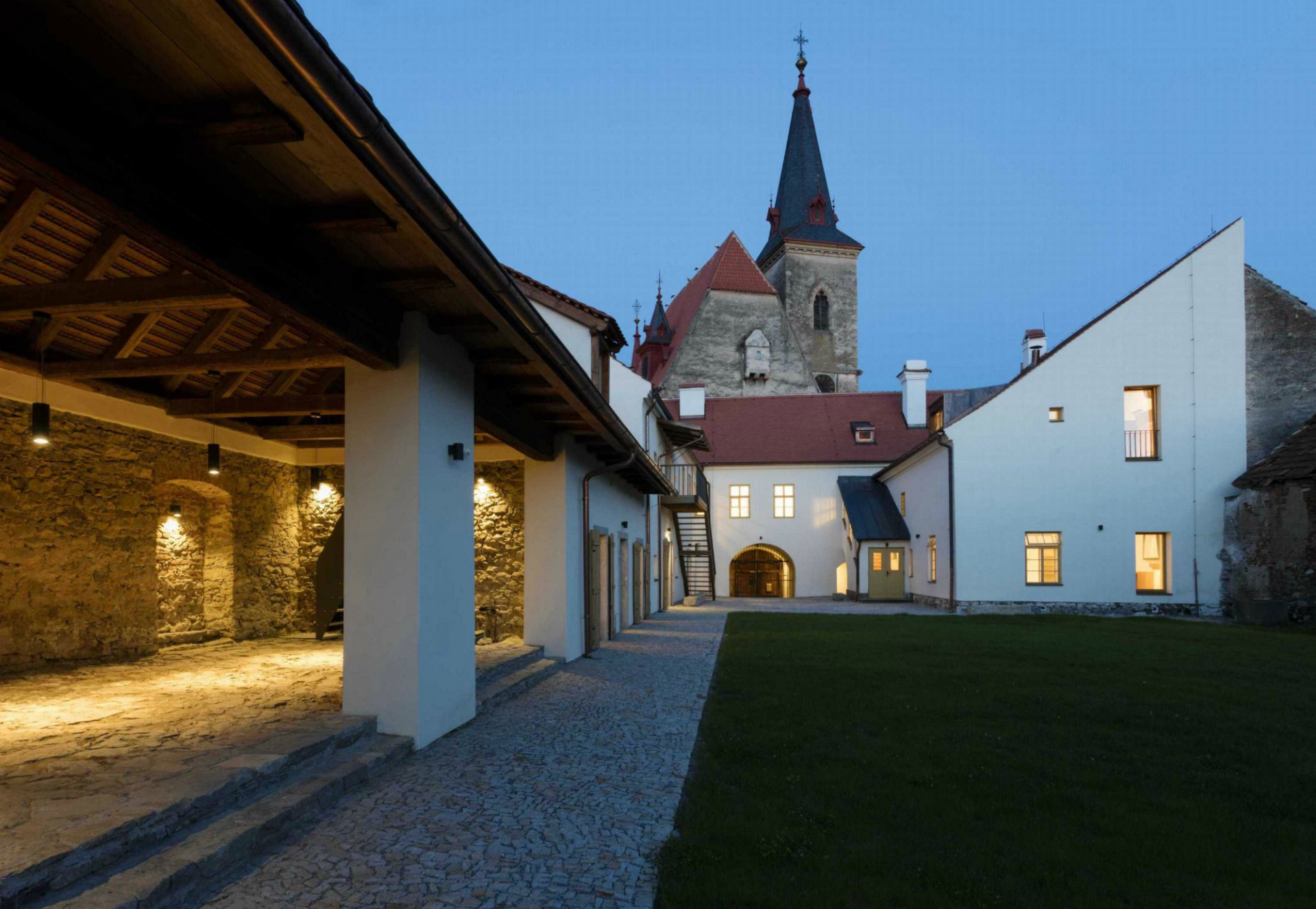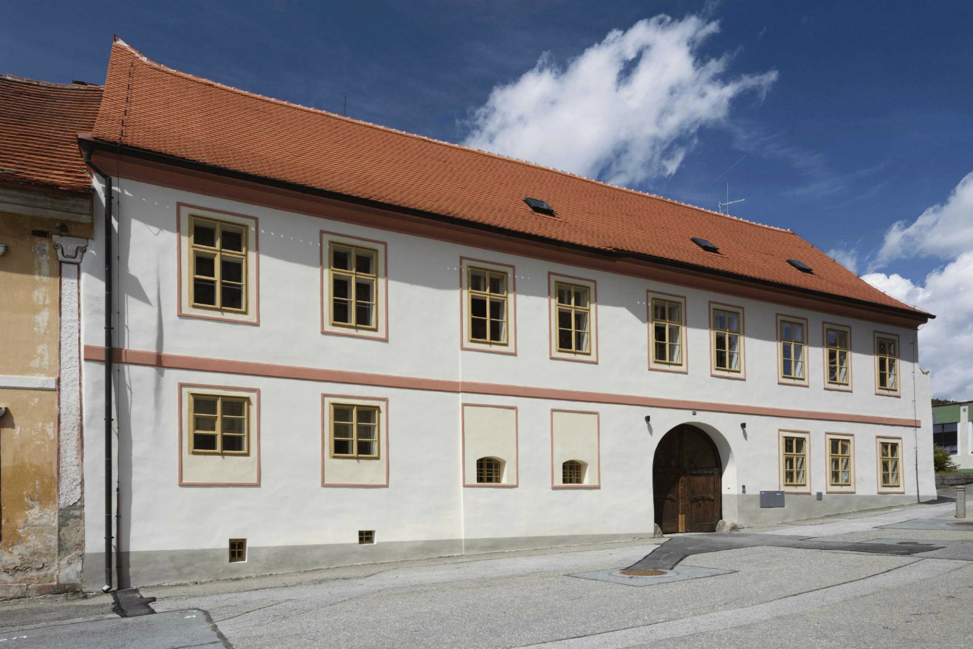 Celkový objem domu včetně tvaru a krytiny střech z pálených tašek ponechali autoři bez zásadních zásahů, směrem do náměstí se přestavba projevuje pouze barevnou změnou fasády, další úpravy zůstávají kolemjdoucím skryty. Architekti při tvorbě nového uspořádání zachovali jak původní vstupy do objektu, tak hlavní dispoziční a komunikační rozvržení. Pro zajištění bezbariérového provozu a požadovaného množství únikových cest doplnili výtah a venkovní schodiště. Pro umístění výtahu zvolili autoři místo, jež nejlépe vyhovuje jak dispozičně, tak konstrukčně. Důležitá byla v tomto místě výška krovu, která umožnila ukončení výtahové šachty v podkrovním prostoru bez narušení střešní roviny.