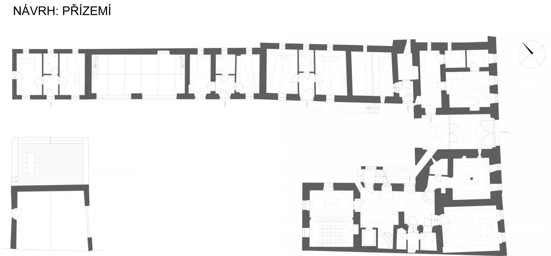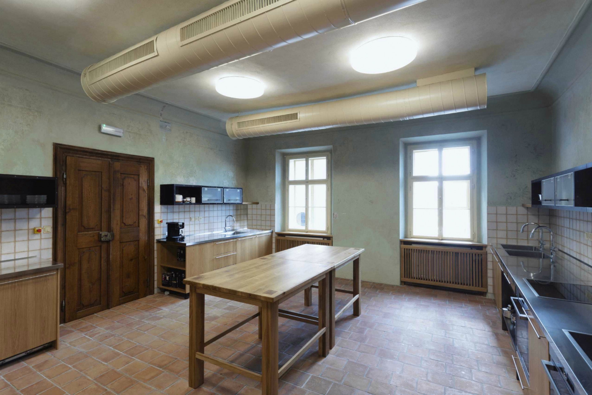 Podlahy v přízemí navrhli autoři jako dvojité větrané. Toto řešení zajišťuje požadované tepelně-izolační vlastnosti i nutnou ochranu proti vodě a vlhkosti. Valené klenby zůstaly ve své původní podobě, pouze je s ohledem na bezpečnou statiku nově doplňují ocelová táhla.