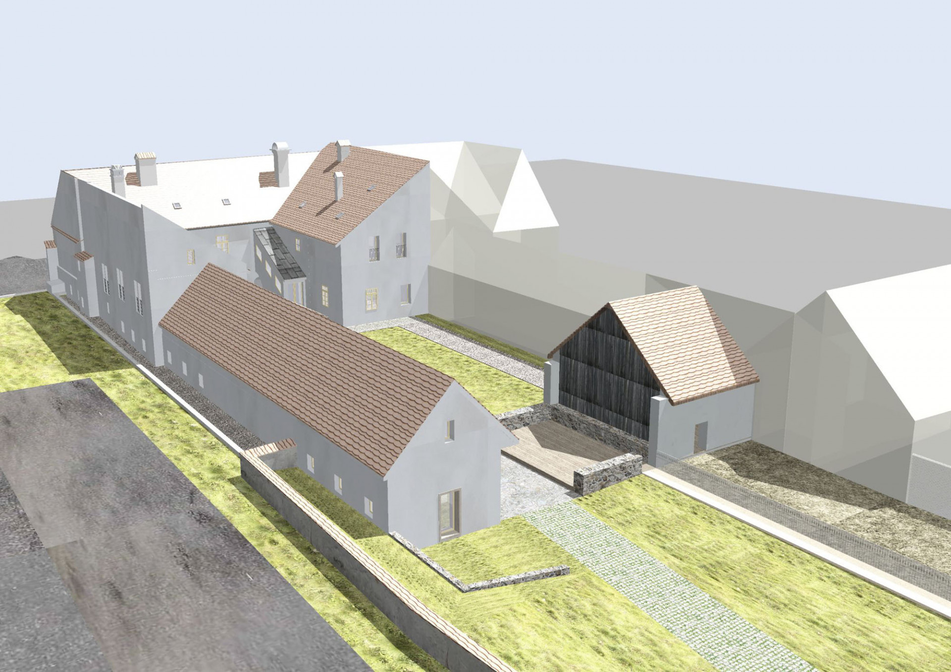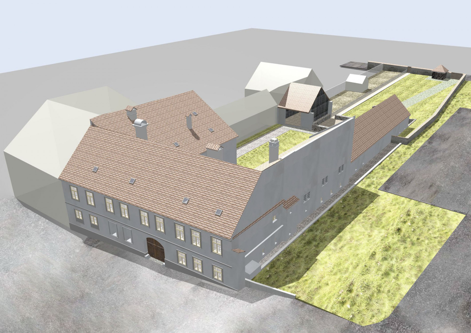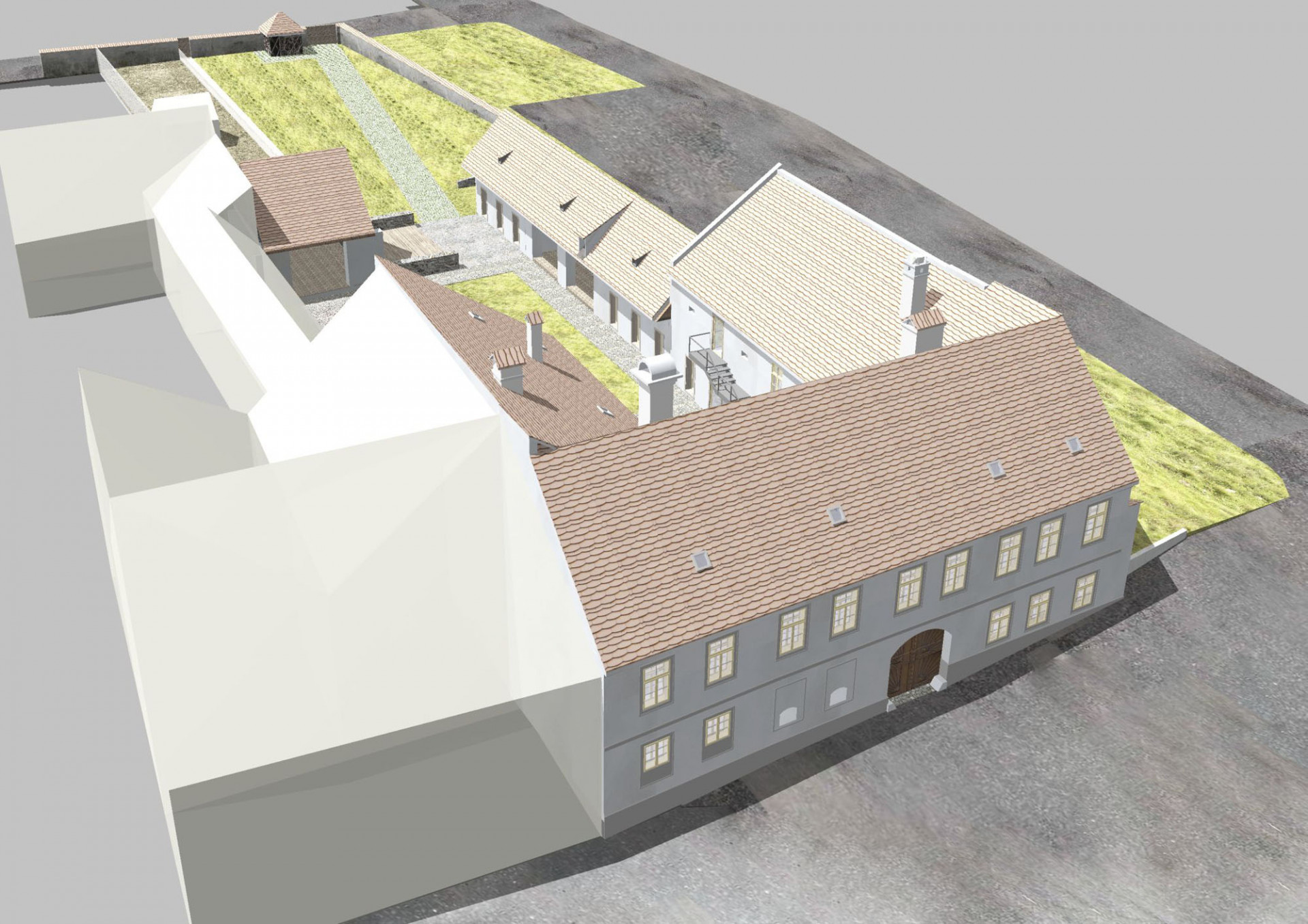 Pro dokumentaci stávajícího stavu a následné návrhy úprav vytvořil projekční tým architektonické kanceláře 4DS podrobný 3D model celého areálu bývalé fary. Při prvotních úvahách o jeho výsledné podobě se prostorový model vytvořený v programu Allplan ukázal jako velmi cenný nástroj pro vyhodnocování jednotlivých variantních řešení. V rámci architektonické studie pak byly z 3D modelu generovány i jednotlivé 2D výkresy. V dalších fázích projektu pak projektanti pracovali už jen s 2D dokumentací, která s ohledem na rozsah objektu fungovala jako ideální podklad pro koordinaci jednotlivých členů týmu včetně specialistů.