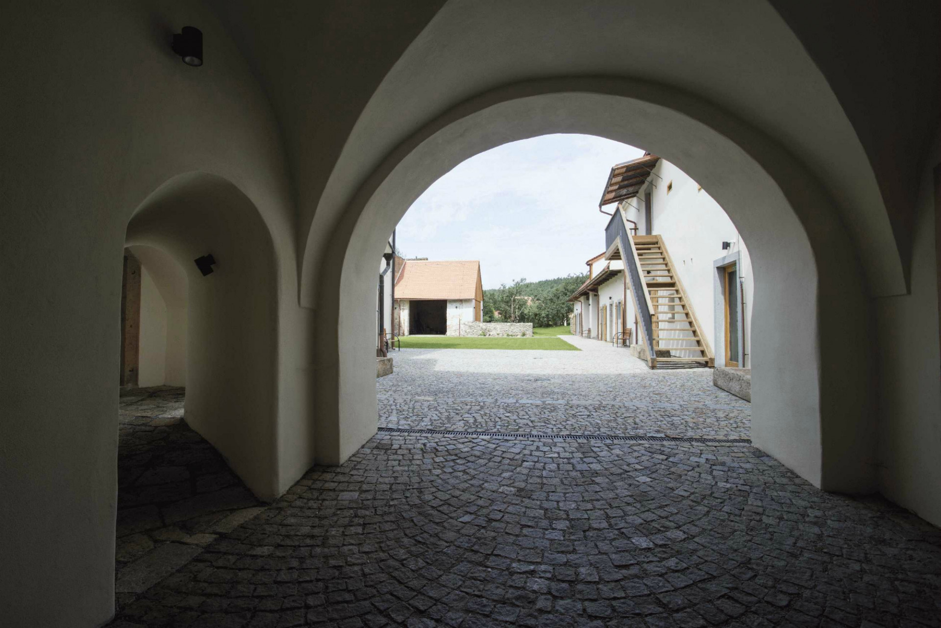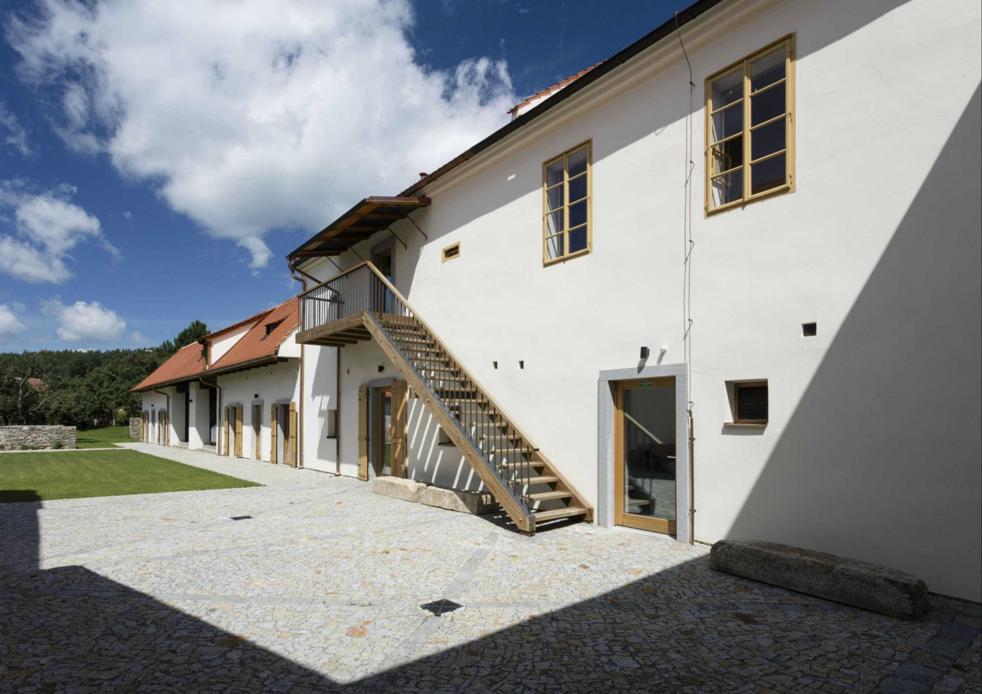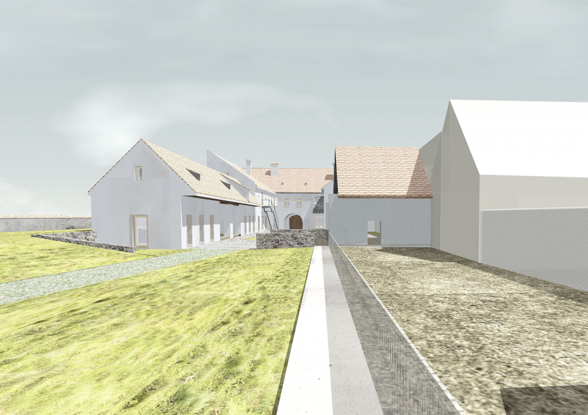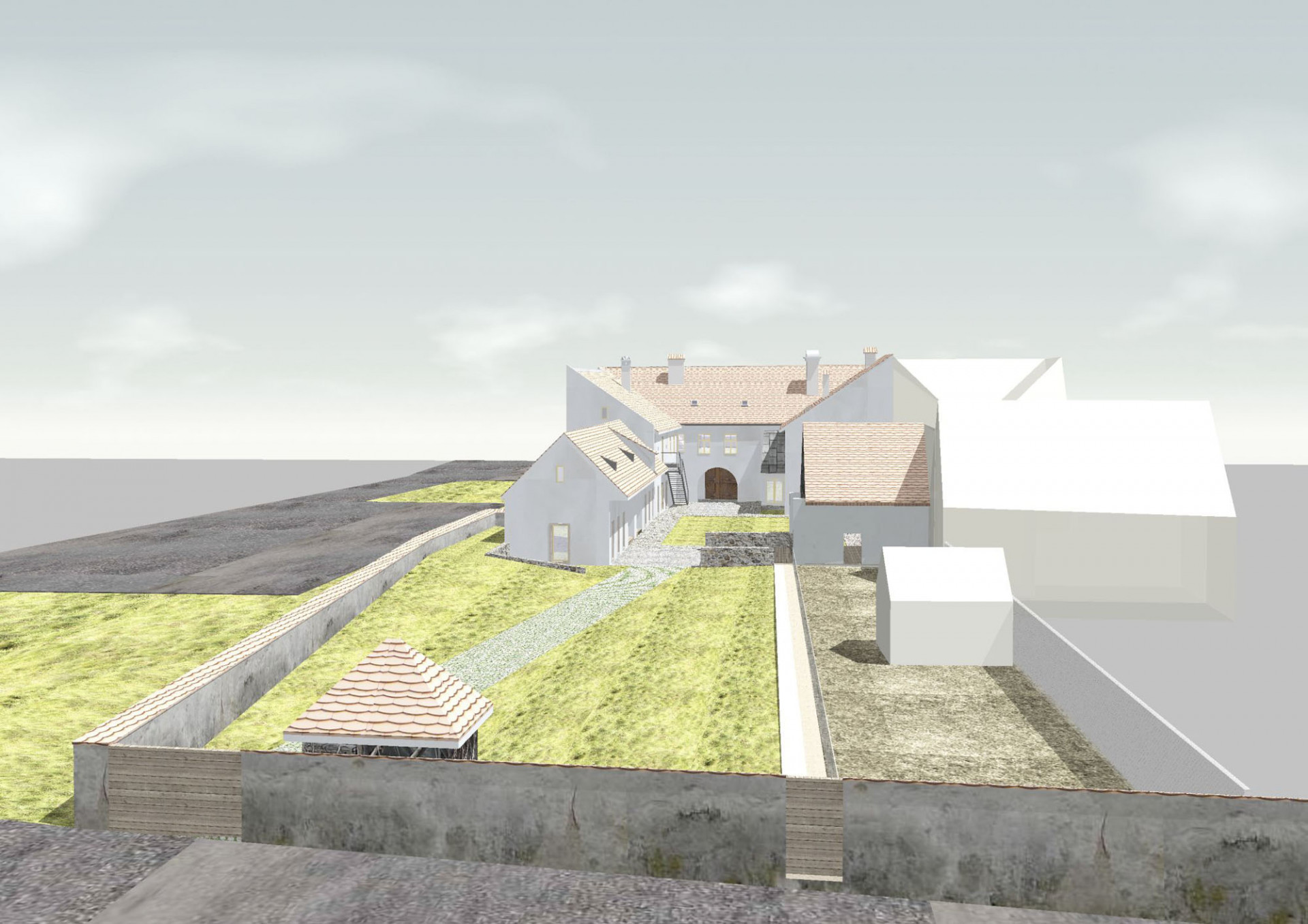 K dosažení potřebné kapacity 22 lůžek prodloužili architekti hmotu severního křídla na úroveň bývalé stodoly. Na místě bývalých stájí, chlévů a sýpky tak vznikly další pokoje. Navržená přístavba zachovává výšku hřebene i původní hloubku severního traktu. Autoři zvolili pro rozšíření prostor nejméně invazivní řešení, které respektuje stávající urbanismus a zachovává dobré vazby mezi interiérem a exteriérem. Současně umožňuje pohledové propojení dvora a zahrady.