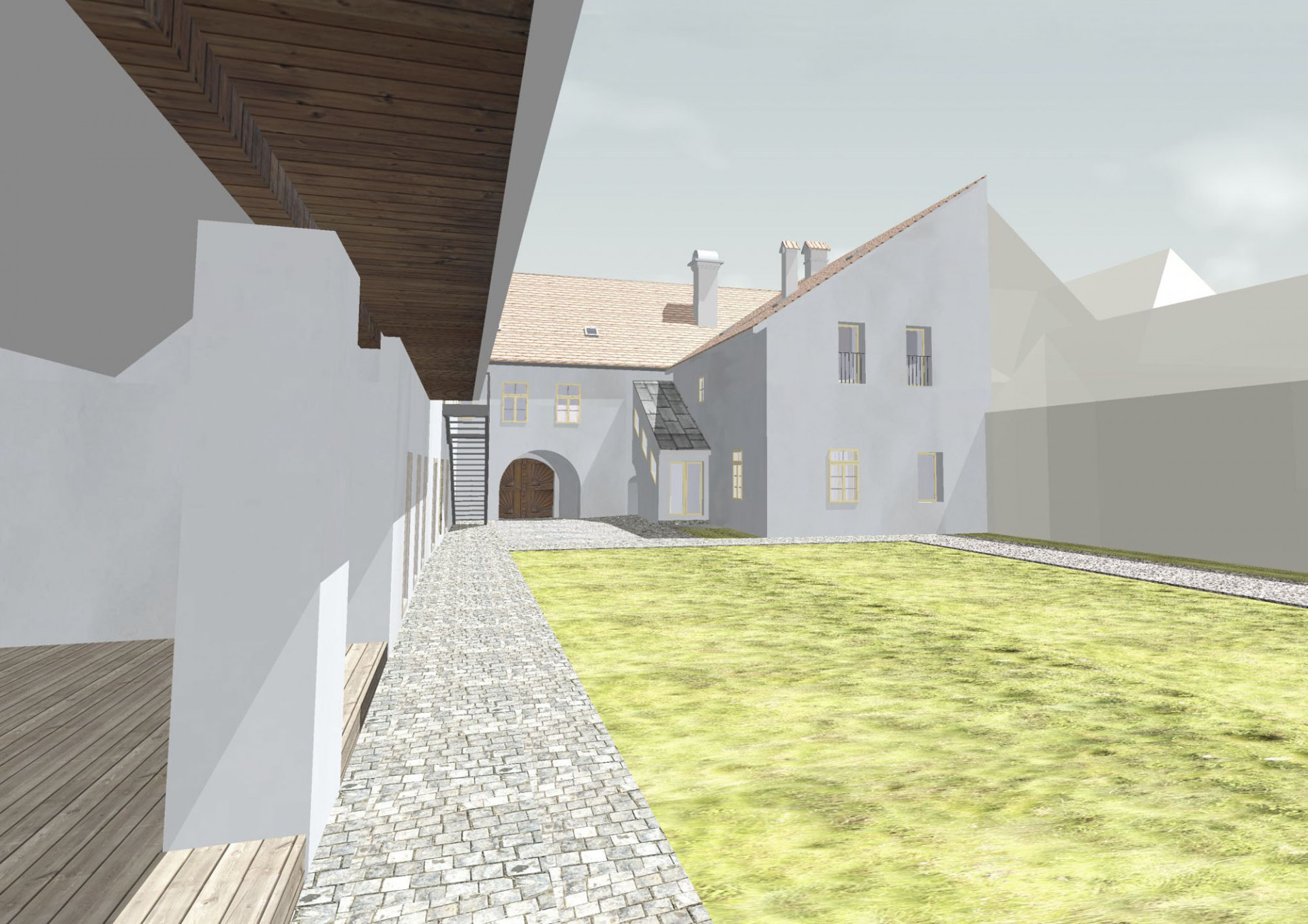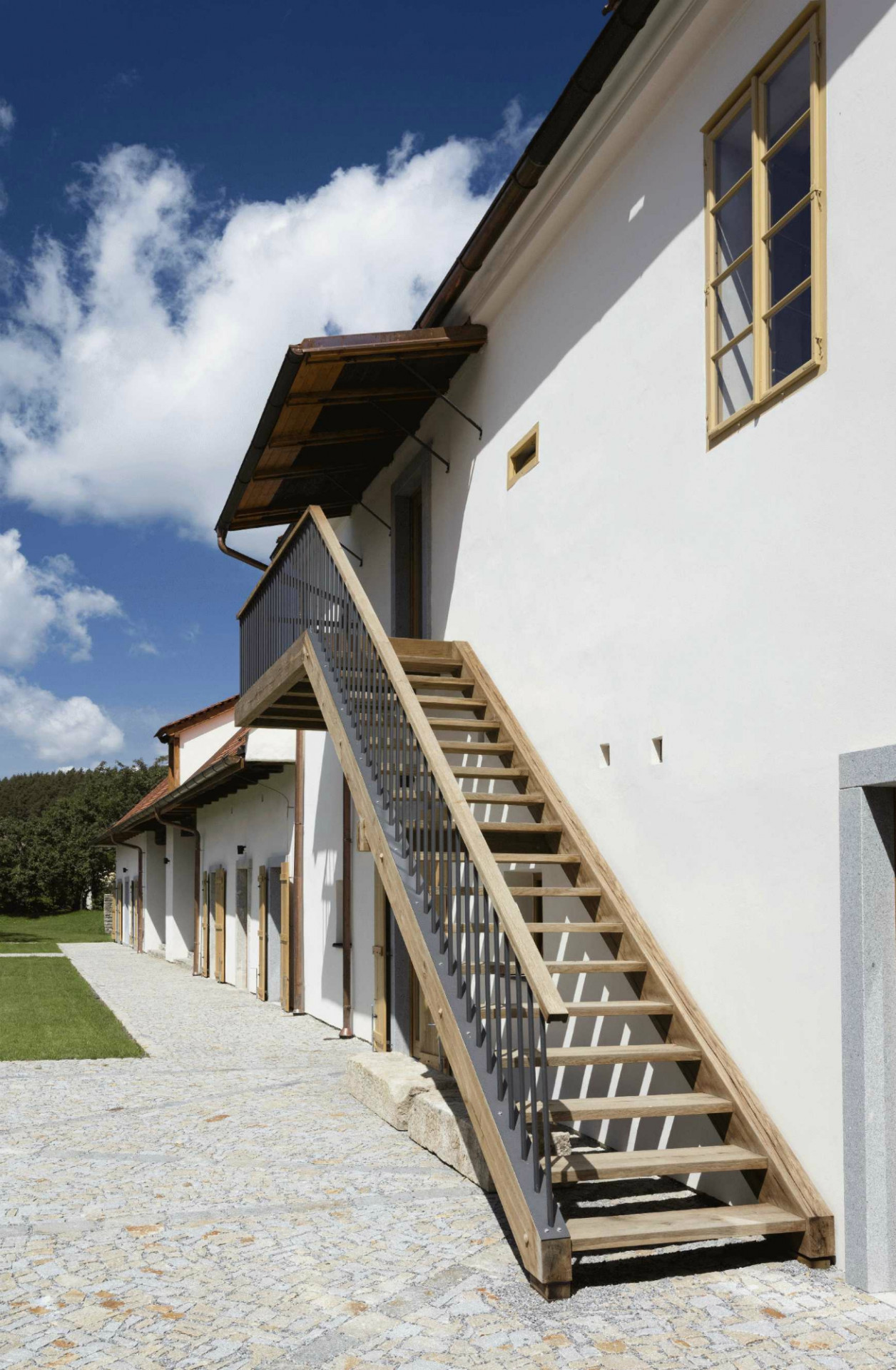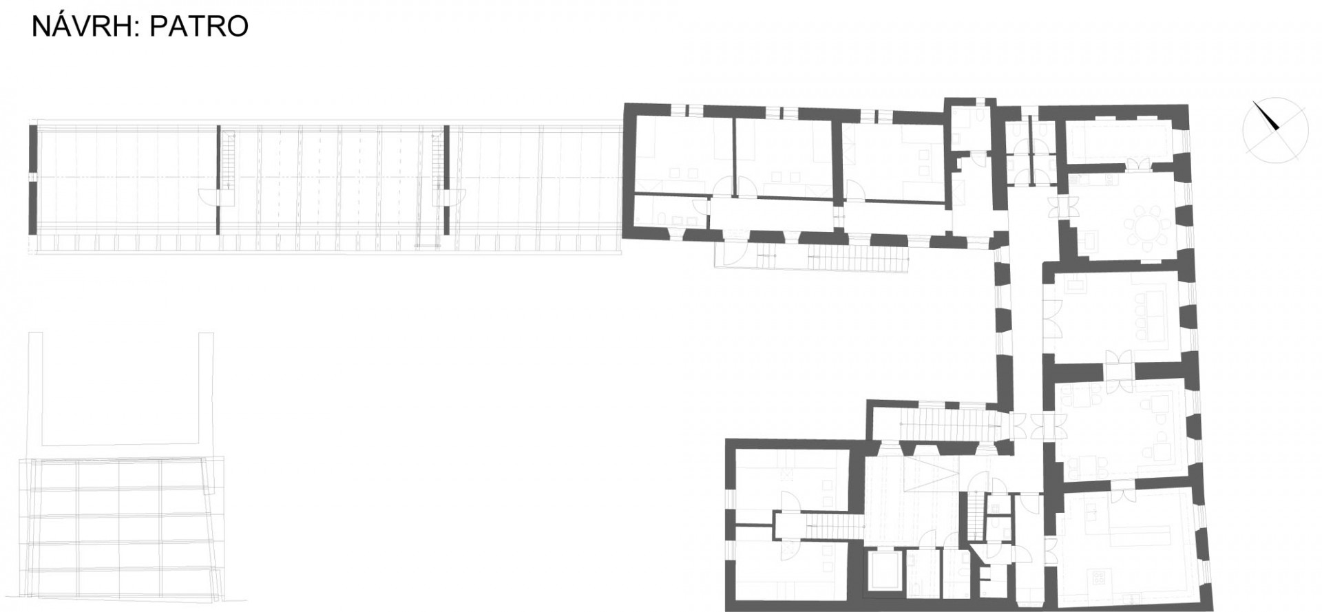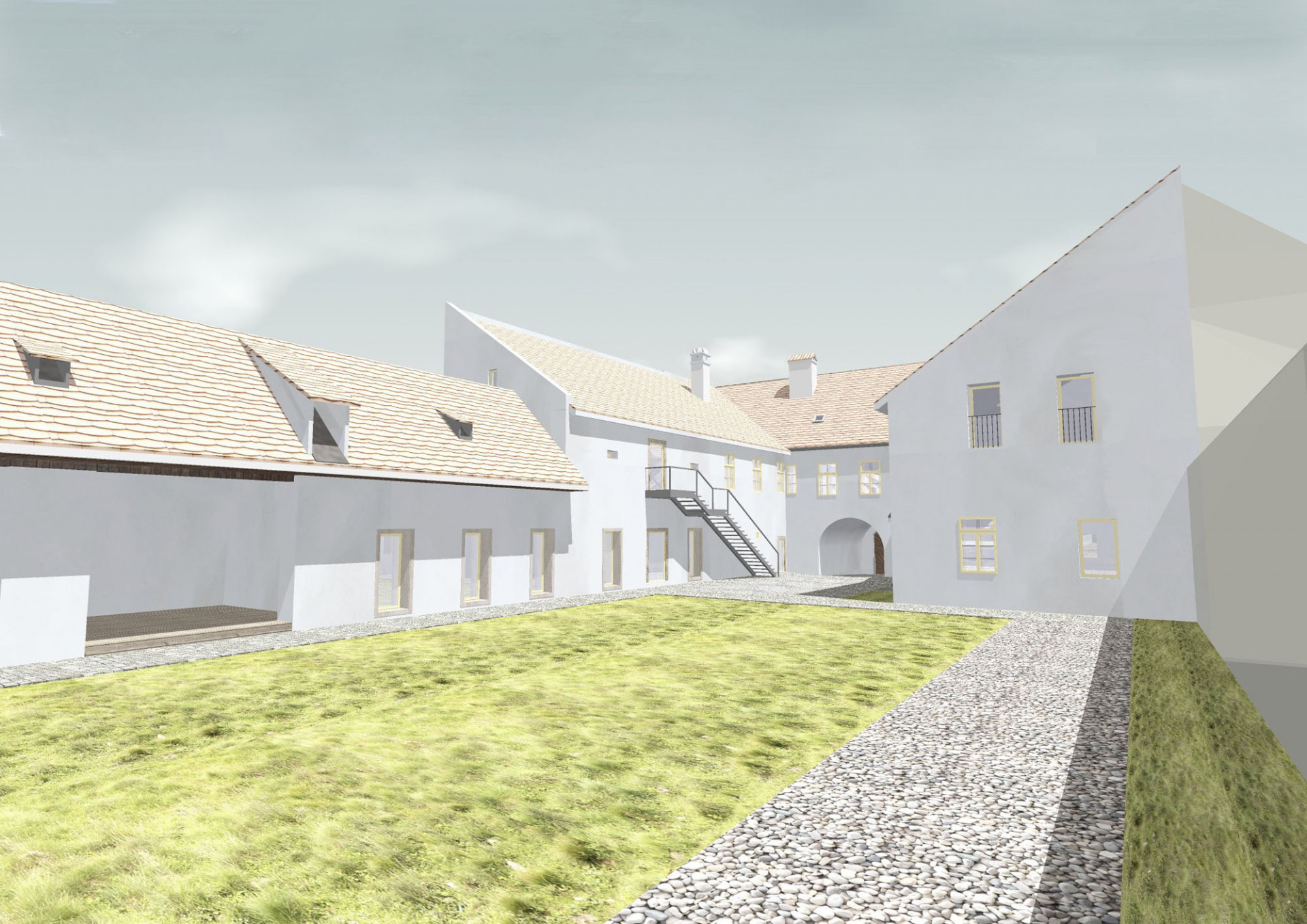 K dosažení potřebné kapacity 22 lůžek prodloužili architekti hmotu severního křídla na úroveň bývalé stodoly. Na místě bývalých stájí, chlévů a sýpky tak vznikly další pokoje. Navržená přístavba zachovává výšku hřebene i původní hloubku severního traktu. Autoři zvolili pro rozšíření prostor nejméně invazivní řešení, které respektuje stávající urbanismus a zachovává dobré vazby mezi interiérem a exteriérem. Současně umožňuje pohledové propojení dvora a zahrady.