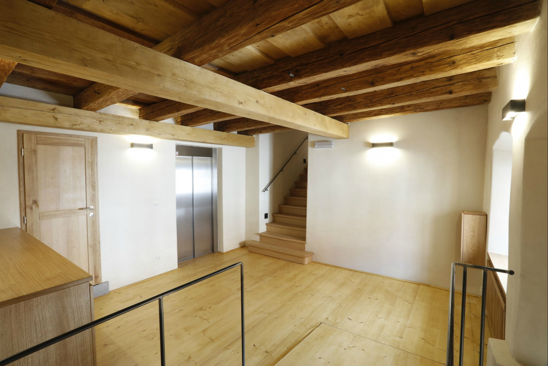 Dřevěné stropy a krovy zůstaly po opravě ve své původní podobě, přibyla pouze ochrana proti dřevokaznému hmyzu. Rovněž podlahy tvoří původní smrková prkna, která byla repasována a opatřena finální povrchovou úpravou olejováním a voskováním. Cihelné dlažby jsou novodobé ručně vyráběné.
