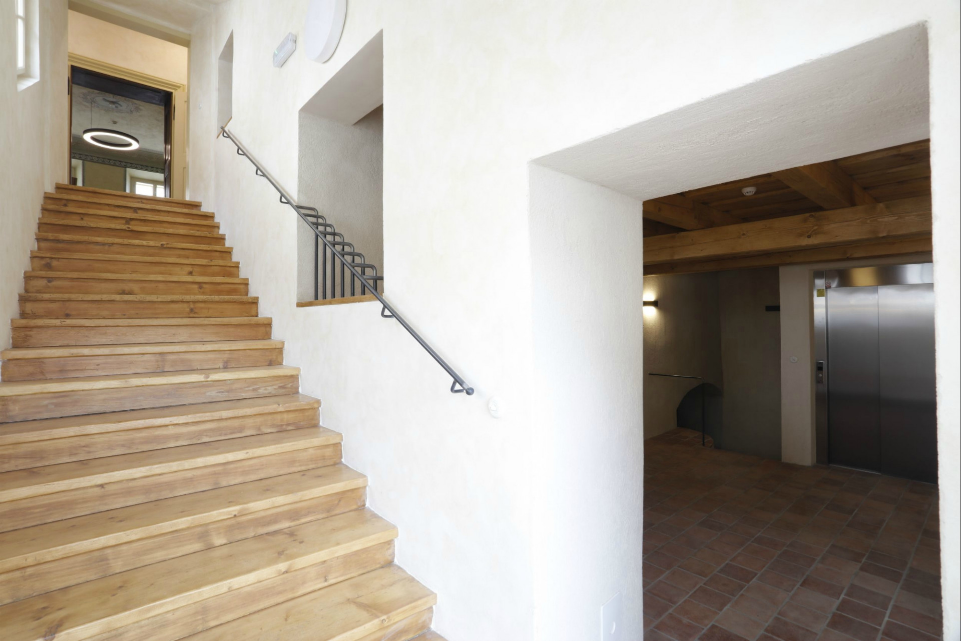 Část prvního patra domu pak zaujímá společenská část. V přízemí domu se historicky nacházel samostatný byt, jenž zůstal zachován i v projektu přestavby. Stejně tak nalezneme v přízemí i původní kapli, která však s obnovou objektu získala modernější tvář.