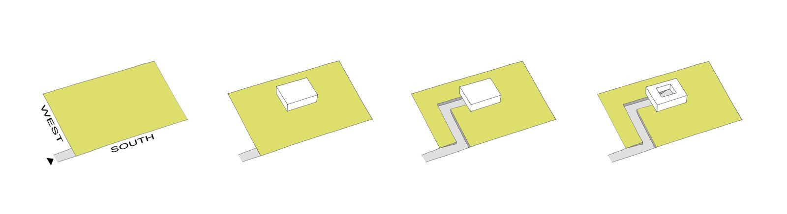 Klient měl k dispozici krásný jednohektarový pozemek u lesa na jihozápadě Polska nedaleko českých hranic. Největší problém ovšem spočíval v jihozápadně orientovaném přístupu. Architekti se proto museli vypořádat se skloubením zahrady a příjezdové cesty, kterou nakonec zapustili pod úroveň terénu, aby tak došlo k jejímu oddělení od zahrady. Myšlenka nakonec vedla k protažení příjezdové cesty až do nitra domu, kde se opět zvedá k úrovni přízemí. Na základě tohoto rozhodnutí vzniklo vnitřní atrium, které se stalo nejsignifikantnějším prvkem celého projektu.