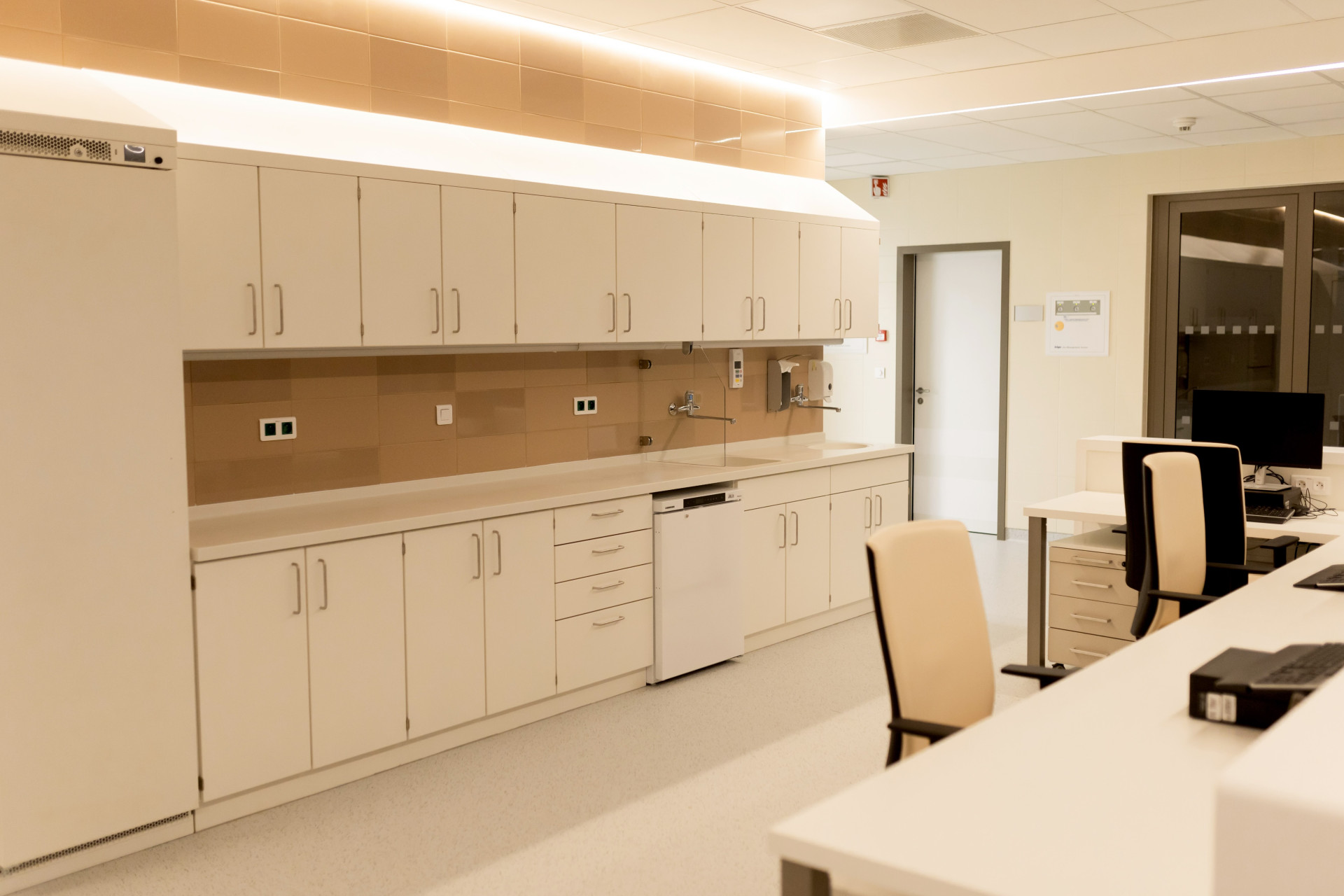 Dalším ze základních požadavků je bezpečnost, tedy protiskluznost podlah. Ta je v zaměstnanecké části pavilonu zajištěna dle norem na úrovni R10/B v podobě béžových dlaždic formátu 60 x 60 cm série Extra od RAKO. „Extra nabízí povrch s protiskluzností R10/B, který je zároveň dobře čistitelný. Velkoformátové řešení 60 x 60 cm pak vychází vstříc požadavkům hygieny na minimalizaci spár podlahy, ve kterých se drží nečistoty, hůře se udržují a dezinfikují,“ podotýká Martin Franěk.