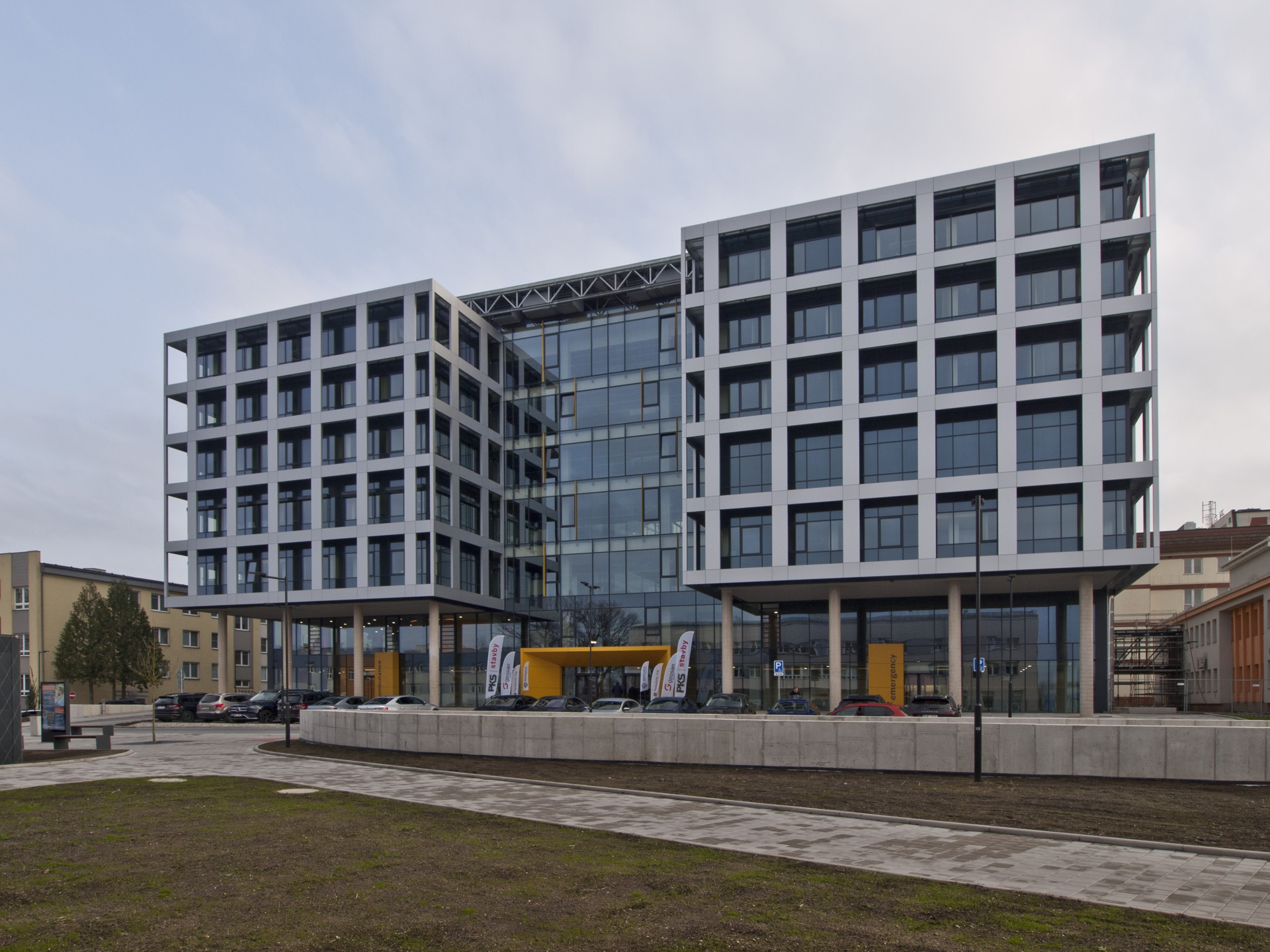 Nový pavilon urgentního příjmu a chirurgických oborů vyrostl uprostřed areálu Pardubické nemocnice na jižním okraji města. Osmipodlažní budova s centrálním atriem a heliportem na střeše poskytuje zázemí jak novým provozům, tak těm stávajícím, například chirurgickým, které se sem přesunuly z jiných budov v areálu. Koncept nového pavilonu vychází z návrhů jihlavské společnosti PENTA PROJEKT s.r.o. vedené architektem Jaromírem Homolkou, který je zároveň autorem stavby.