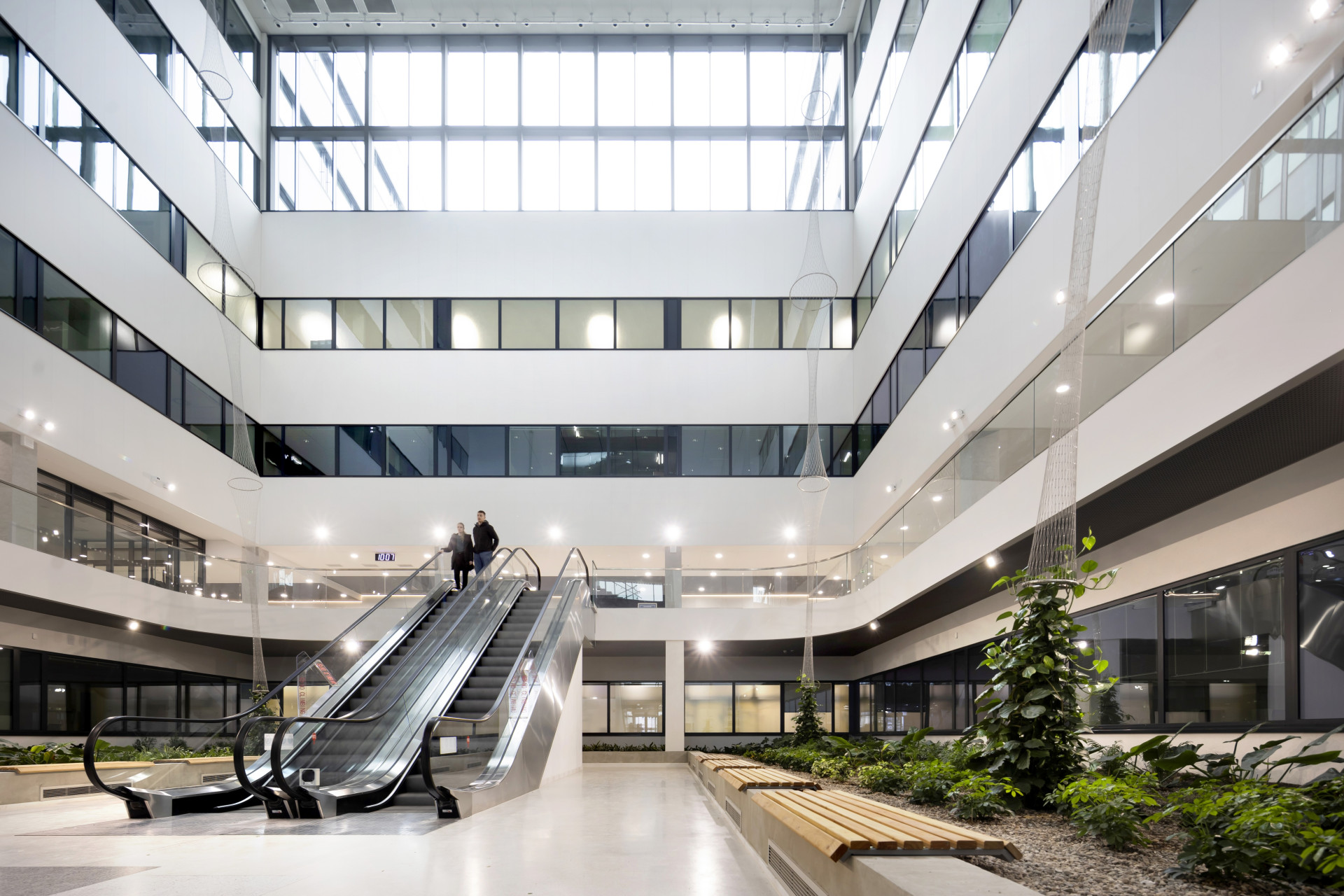 Zatímco Pardubická nemocnice je spíše pavilonového typu, nový objekt směřuje k centralizaci některých provozů. „Vnitřní atrium obklopují v patrech jednotlivá oddělení. Výsledná stavba je kompaktní, což je výhodné např. z hlediska energetiky,“ vysvětluje architekt Franěk.
