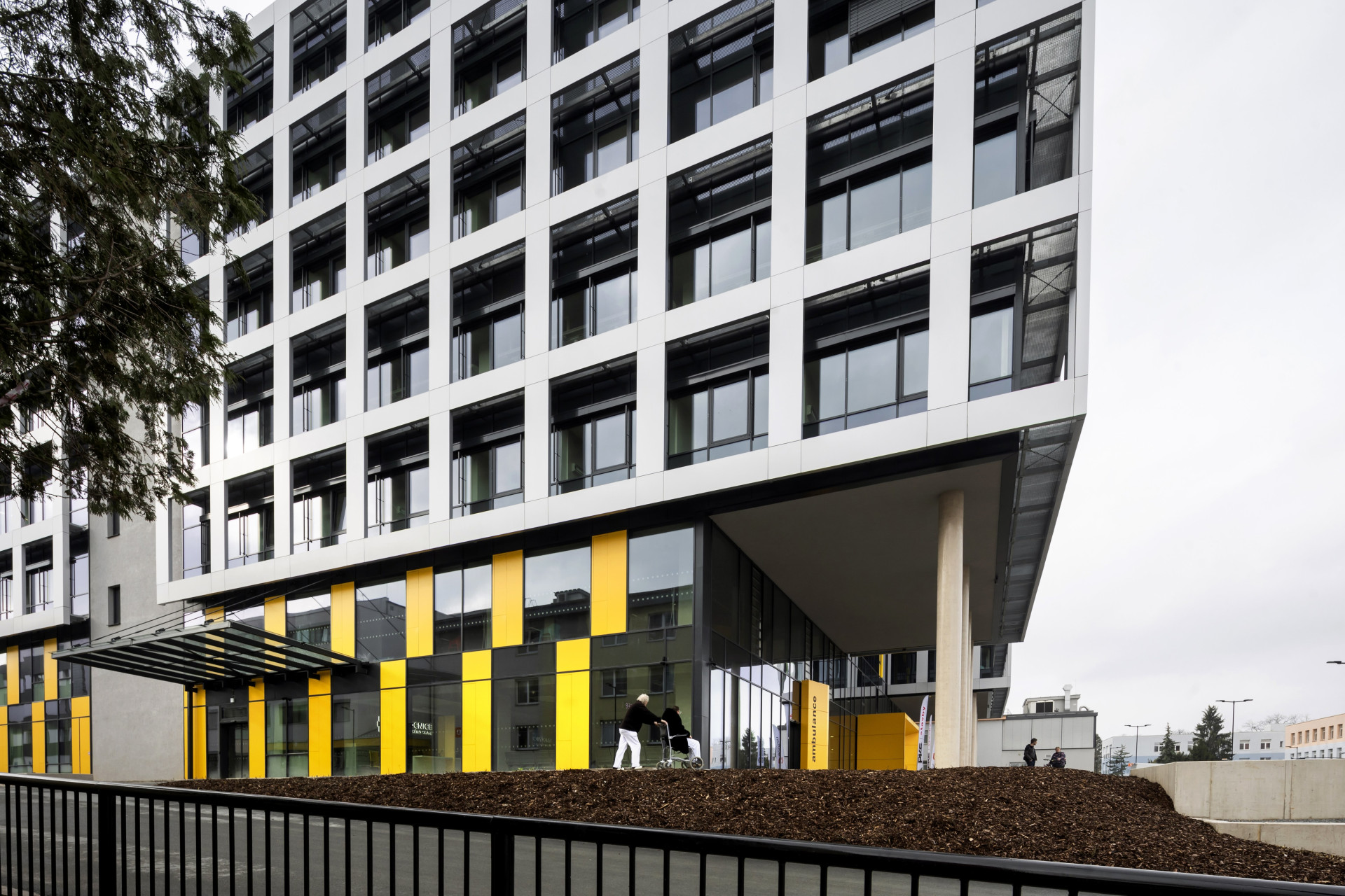 A jaké jsou první reakce pacientů a návštěvníků? Líbí se velké atrium se zelení a klidovými zónami, které po vstupu působí příjemně vzdušně. Pavilon se tak netváří prvoplánově jako nemocnice. I proto, že se zde nachází také bistro, nebo posezení. „Nezavděčíte se všem,“ říká architekt Franěk a pokračuje: „Sestřička pracující na modrém patře nemusí mít modrou ráda, raději by pracovala na žlutém. Ale zaměstnanec tam dnes je, zítra není. My se snažíme o nadčasové interiéry, protože musí fungovat dvacet, pětadvacet let beze změny. I díky tomu převažují kladné reakce a věřím, že i investor je spokojený a zůstane tomu tak i v budoucnu.“