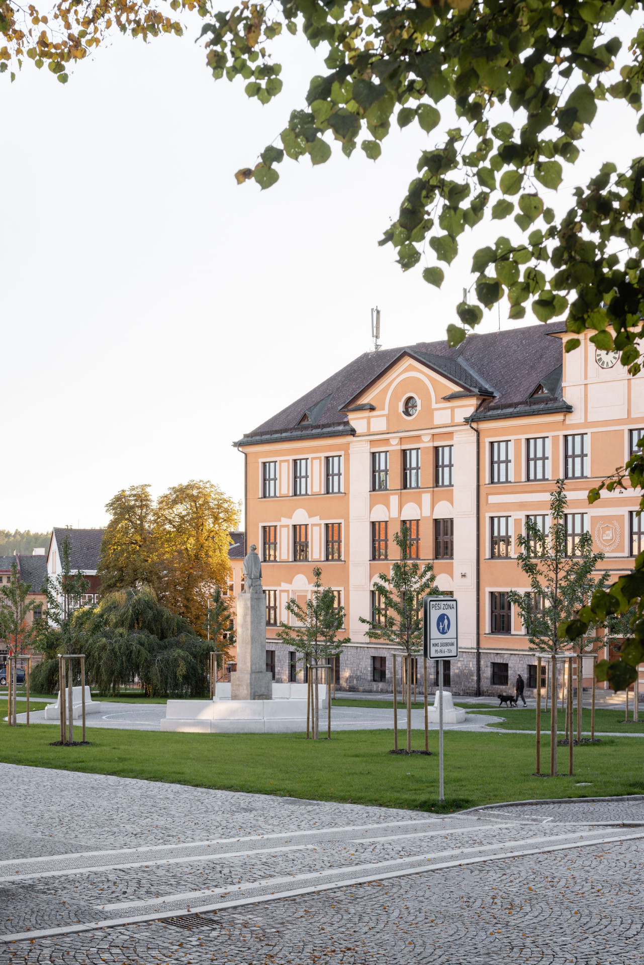 V malém městě na severu Česka postavili komorní, přitom však velmi působivé veřejné prostranství. Slovenští architekti pro něj navrhli novou pavilonovou stavbu, dětské hřiště a barevné pochozí plochy, které obestupuje zeleň.