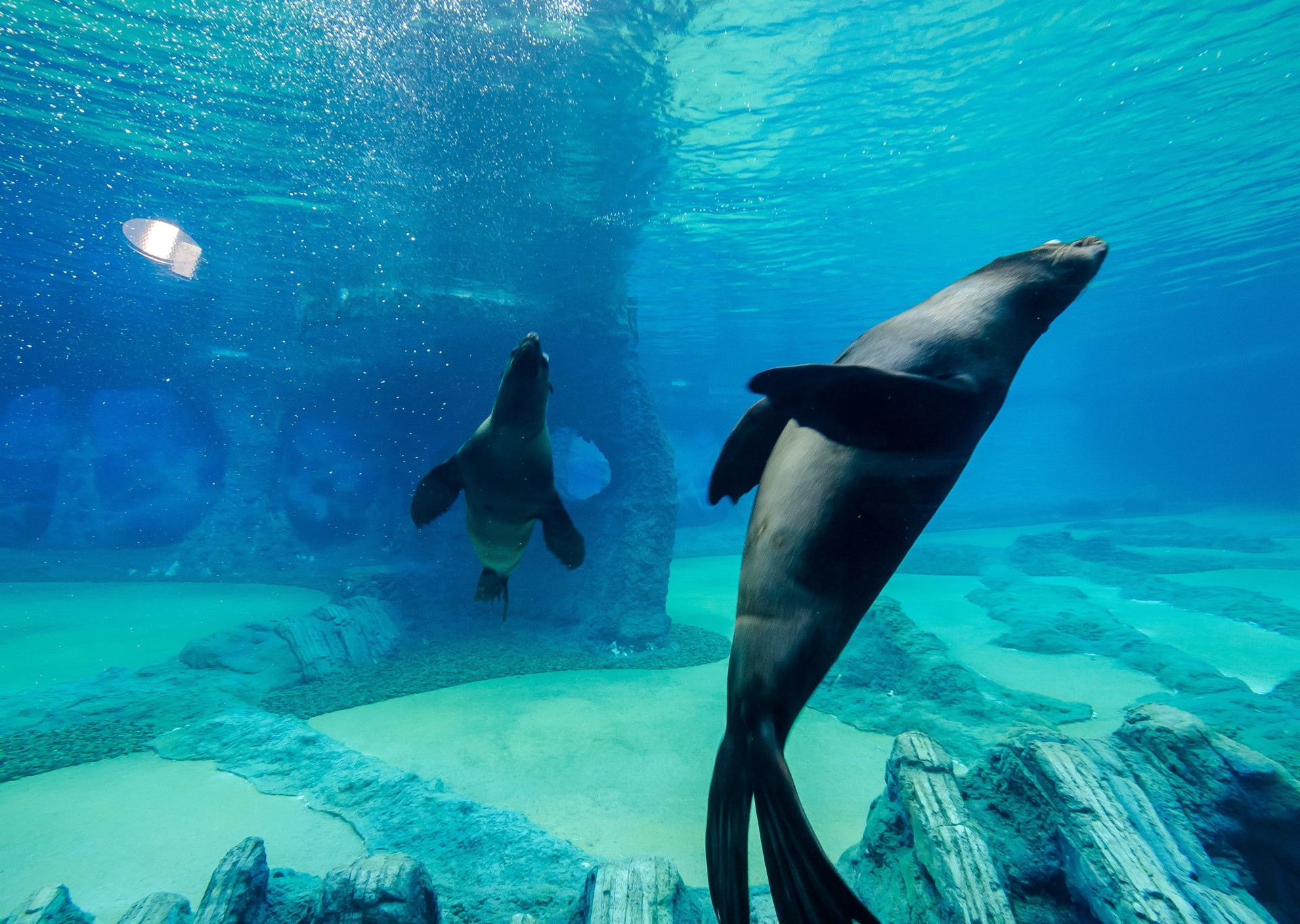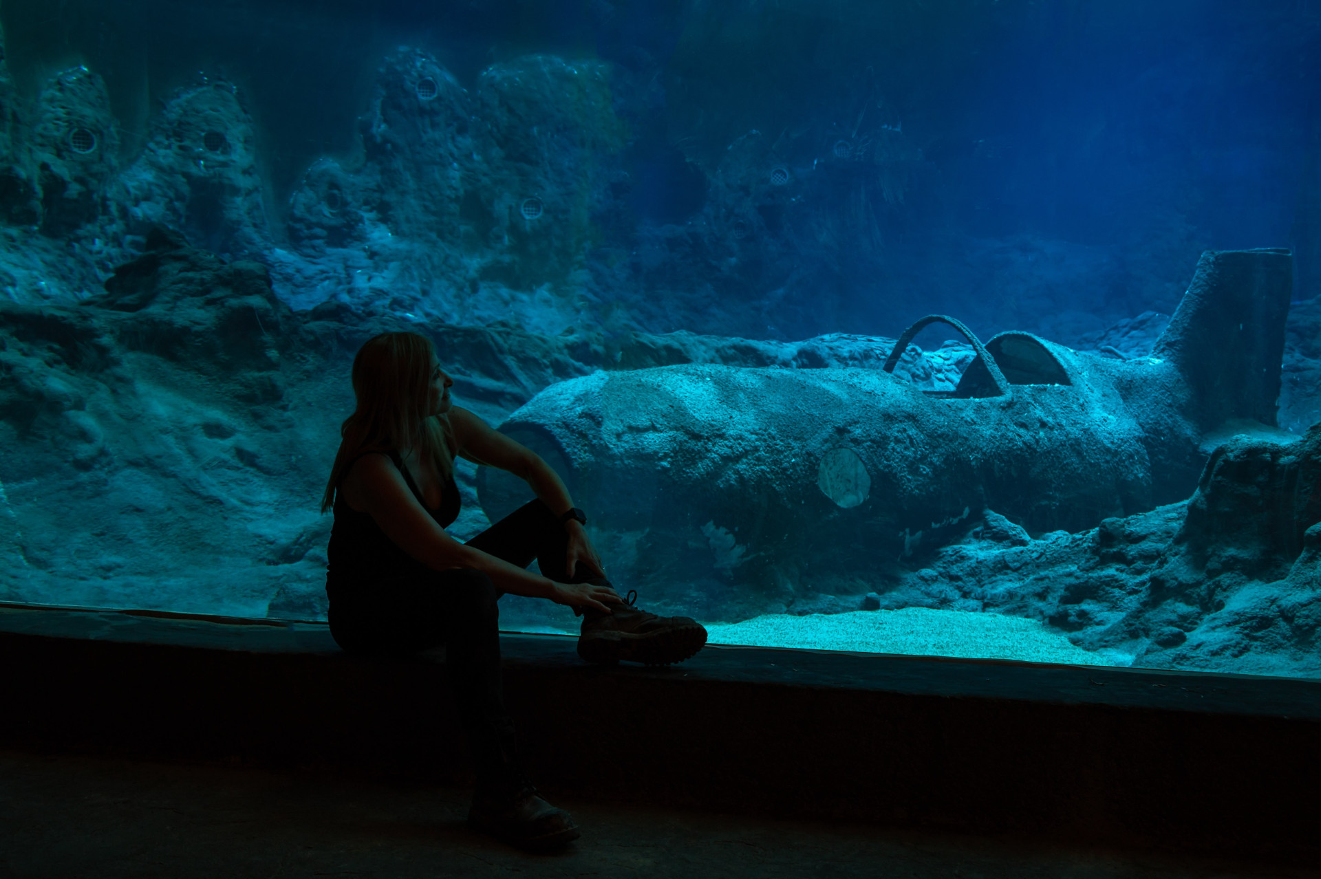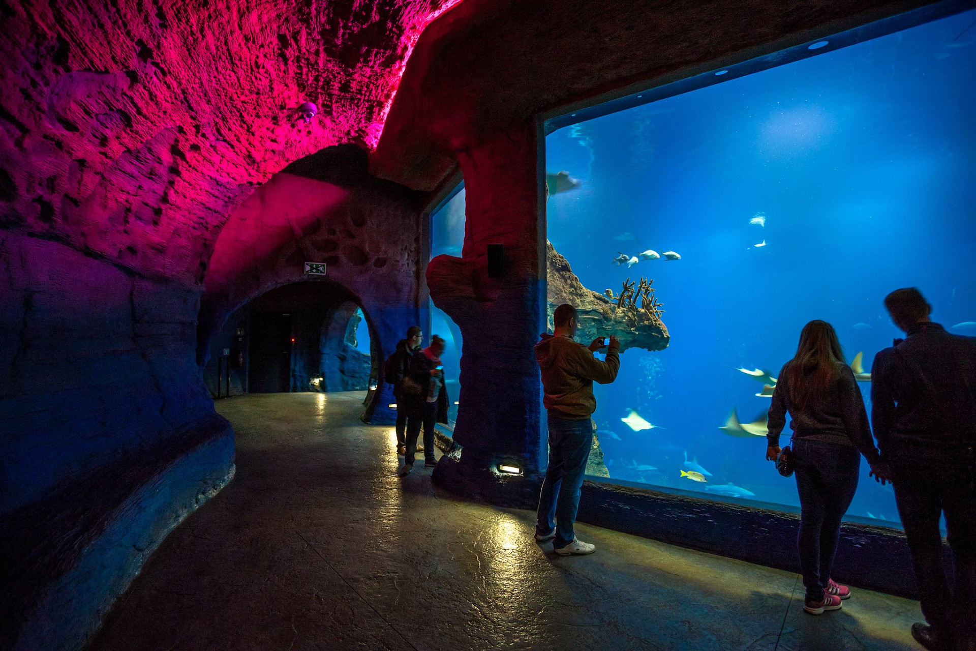 Také uvnitř se jedná o neobvyklou budovu pro speciální klienty. Jejich fotky visí v zákulisí na nástěnce – mají tu vyfocené například všechny žraloky, u každého jméno a stravovací návyky. Jídlo se připravuje ve speciální kuchyni, denně jsou to desítky kilo mražených ryb.