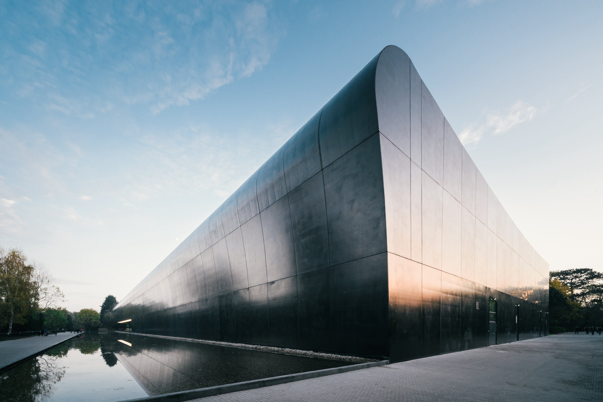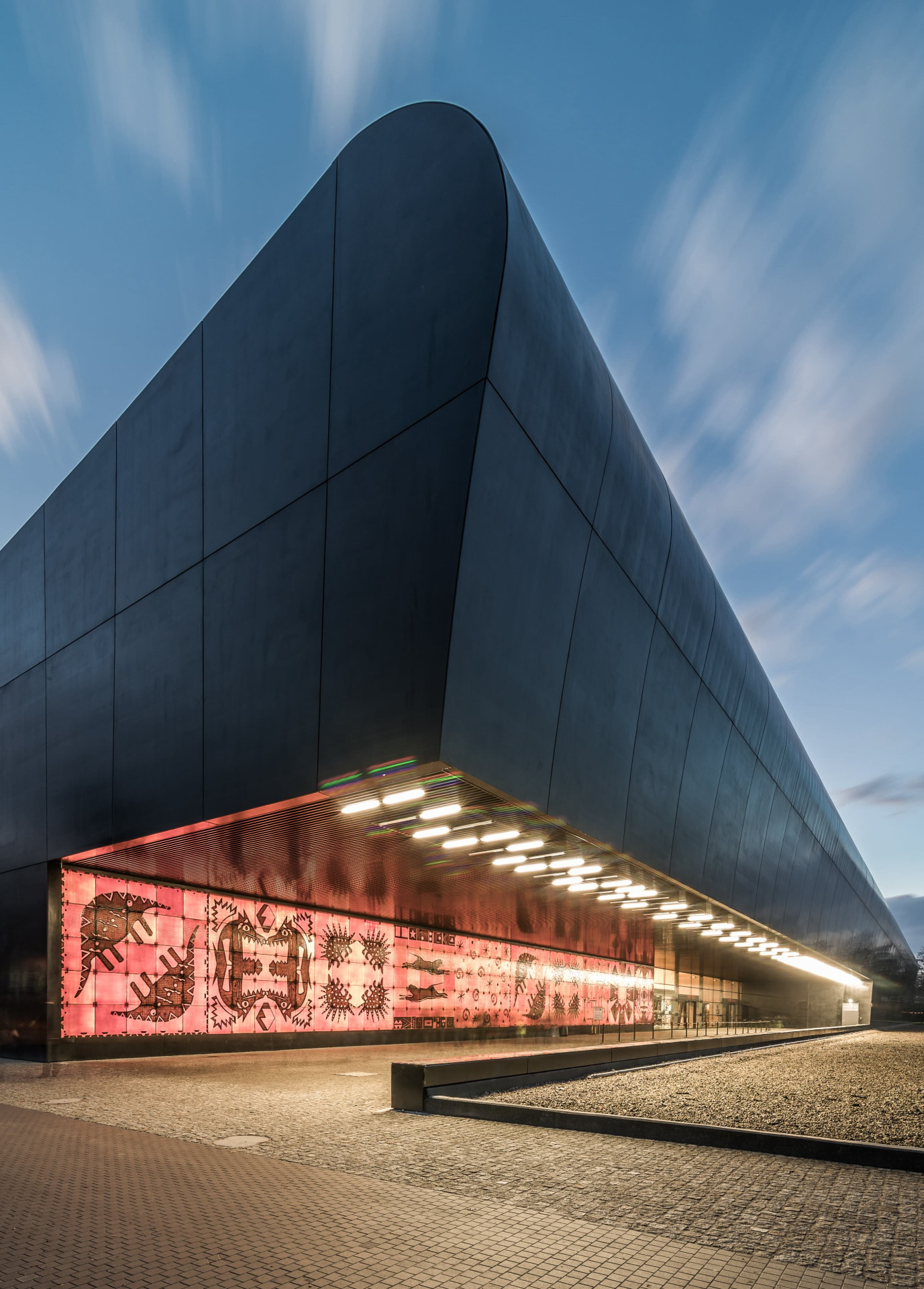 Zvenčí nic z toho není patrné, budova je abstraktní kubický objem bez oken, hlavní dekorací je černá fasáda z korianu. Odráží se ve vodní hladině nádrže, která pavilon obklopuje. Je odtud výhled na Halu století od architekta Maxe Berga, jejíž monumentální železobetonovou kopuli, v době svého vzniku (1912 – 1913) největší na světě, chrání UNESCO. „Afrykarium a jeho železobetonová konstrukce a jeho plášť z velkoformátového kompozitu je odpověď na Bergovu inovativní konstrukci,“ říká k tomu architektka Szlachcic.