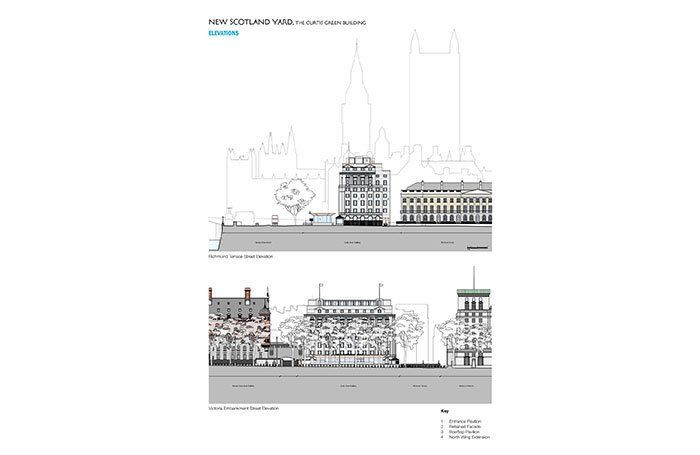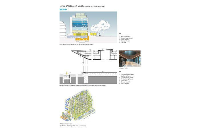 Projekt pro Metropolitní policejní službu, totiž nový Scotland Yard, je přestavbou a prodloužením historické, kamenné budovy Curtis Green Building na nábřeží Temže. Původně v rámci RIBA Awards vyhrál už v roce 2013 a schéma bylo dokončeno v lednu 2017. Jde tedy o dost rychlý proces, vzhledem ke značné bezpečnostní a logistické složitosti celého projektu.