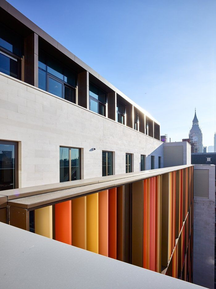Barevné konce, které pokrývají vícepodlažní stěnu, se mohly zdát až příliš extravagantním nápadem pro budovu charakteristickou využitím kamene. Místo toho jde ovšem o brilantní, vyrovnané řešení, které zdůrazňuje, jak může vypadat skutečně mistrovská konverze části známé budovy.