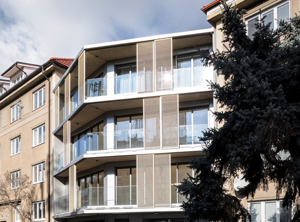 Proluku v dejvické bloku vyplnilo studio Doležel Architekti asymetrickým bytovým domem