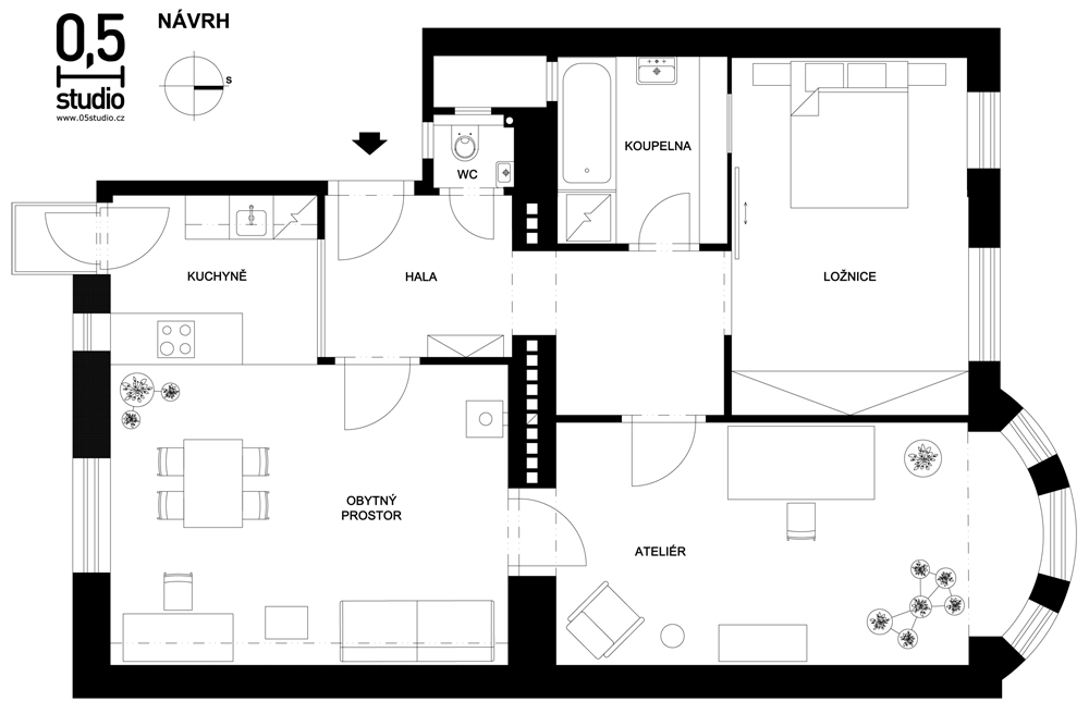 0,5 Studio, Byt Holešovice II, půdorys nový - foto