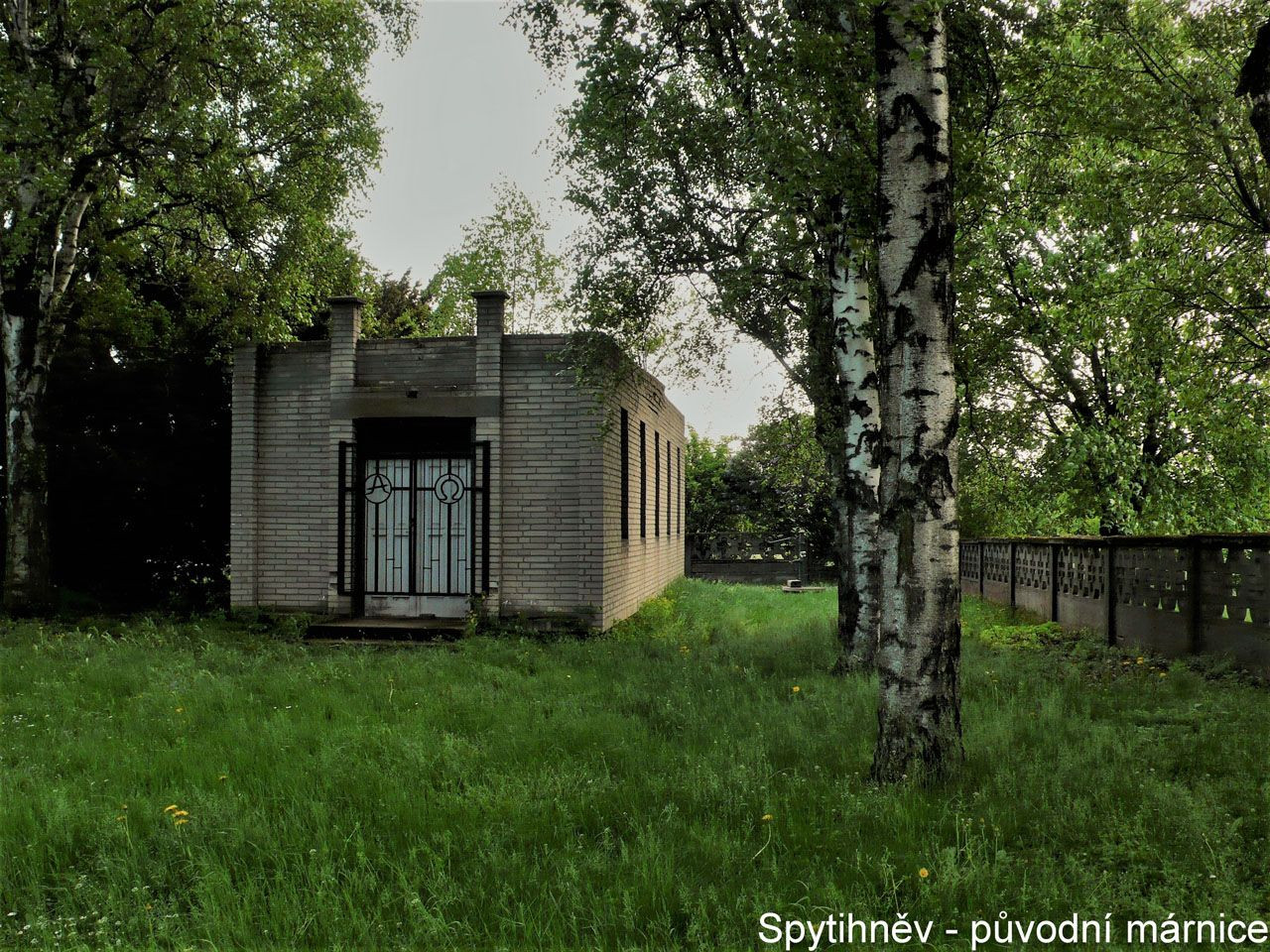 Obřadní síň na spytihněvském hřbitově vznikla na místě stávající márnice. S novou funkční náplní bylo zapotřebí objekt zvětšit. Autoři se rozhodli stávající budovu márnice zachovat a zahrnout do nového řešení na principu „dům v domě“. Přístavba tak vyrostla rozšířením stávající půdorysné stopy, kdy původní budova byla obestavěna novou.