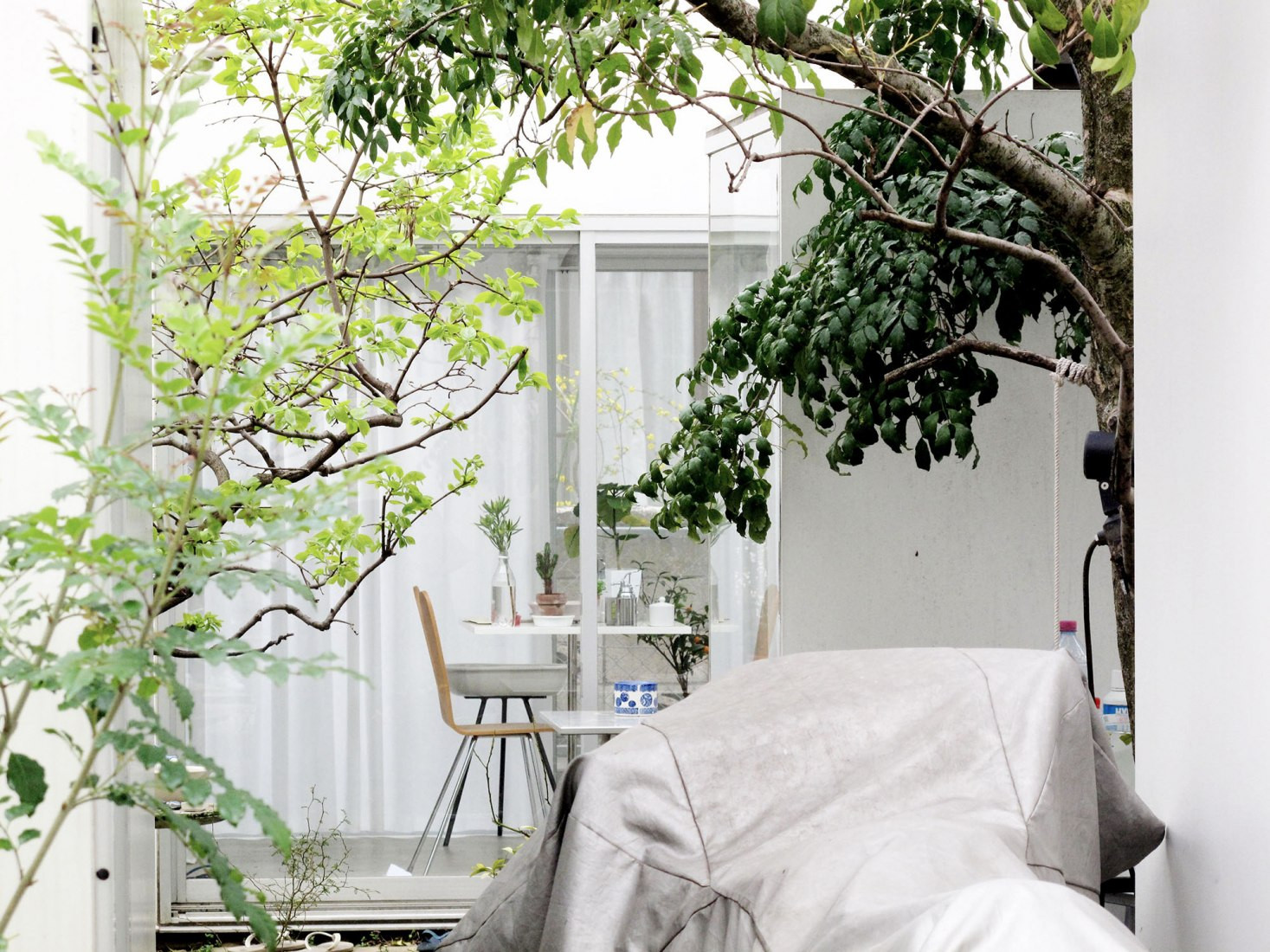 Ačkoliv zde stojí už skoro patnáct let, dům působí jako nový. Sněhobílé stěny už z dálky září v zeleni stromů, keřů a květin prorůstajících mezi jednotlivými objemy domu. Napadne mě, jaké by to asi bylo, potkat se přímo s majitelem a podívat se dovnitř. Hned bližší pohled ovšem napoví, že nejsem první a rozhodně ani poslední člověk, koho to napadlo. Velká krásná okna s ocelovými rámy směřující do ulice (kromě toho největšího) zahalují závěsy a před domem stojí židle s cedulí, na které je anglicky vysvětleno, kam ještě návštěvníci mohou vstoupit a odkud smějí a nesmějí fotit. Představím si majitele domu, jak píše ceduli poté, co se k němu dobývali další a další nadšenci do architektury s nadějí, že je pozve dovnitř a trochu se zastydím. Nepotřebuji číst ceduli, abych pochopila, kde se pomyslný práh domu nachází. Ačkoliv pozemek pana Moriyamy neohraničuje žádný plot, podle zeleně, měřítka a uskladněných věcí je zcela zřejmé, kde už začíná soukromý prostor obyvatel domu.