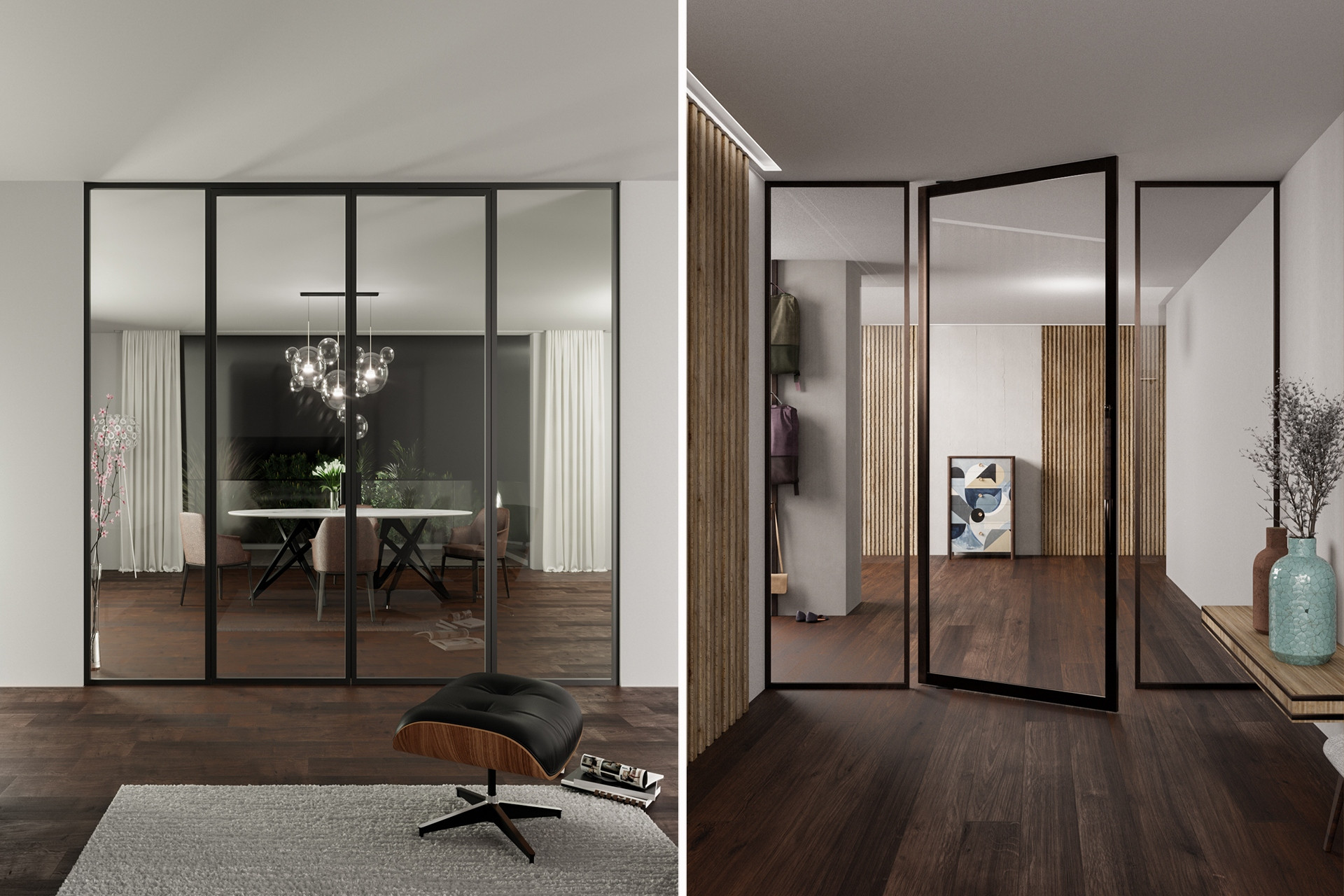 Industriál není jen designovým trendem – je výrazem filozofie, která oslavuje funkcionalismus a konstrukční přímočarost. Prosklené příčky s tenkými kovovými profily skvěle zosobňují tyto hodnoty.