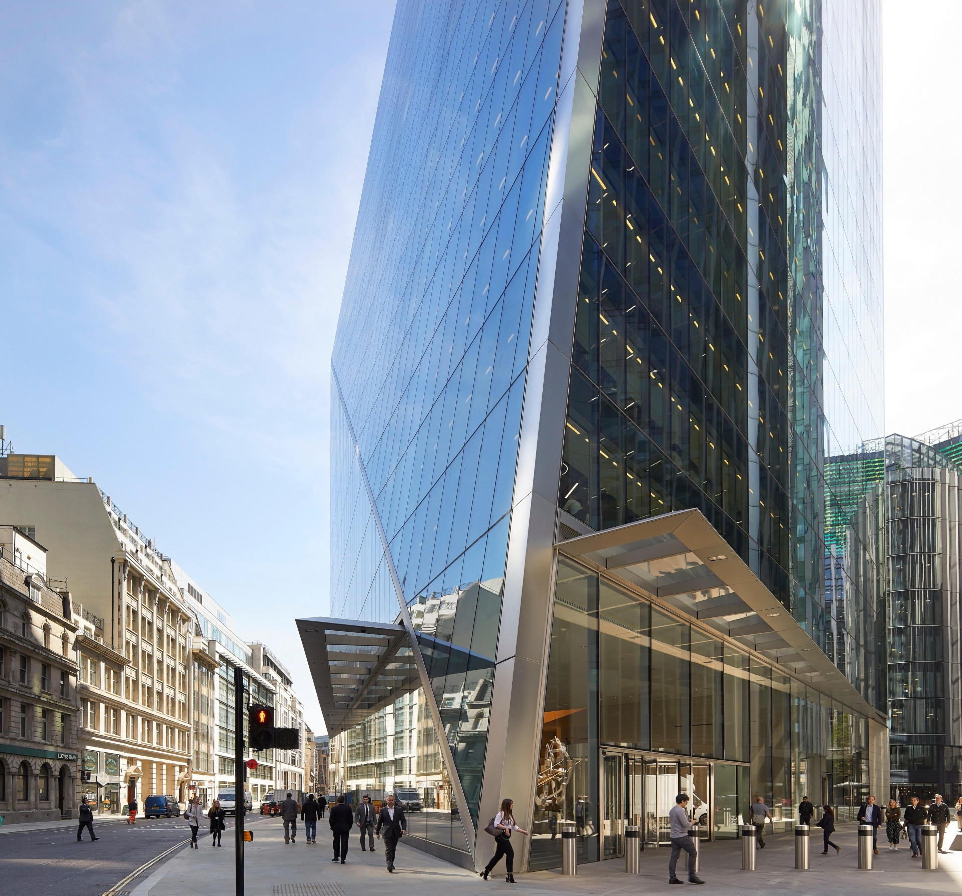 „Abychom splnili požadavky na moderní kancelářské prostory a výrazně zlepšili požadované tepelné a akustické vlastnosti, zbavili jsme stávající budovu původní fasády a obložili ji novým obkladem, který odpovídá okolnímu prostředí,“ popisují architekti. 120 Moorgate stojí na křižovatce dvou ulic a za sousedy má dvě historické budovy. Nová fasáda se do ulice projevuje kamenným obkladem, okna jsou řešena jako izolační dvojskla AGC s protislunečním povlakem Energy 70/37 (dříve ipasol Neutral 70/37).