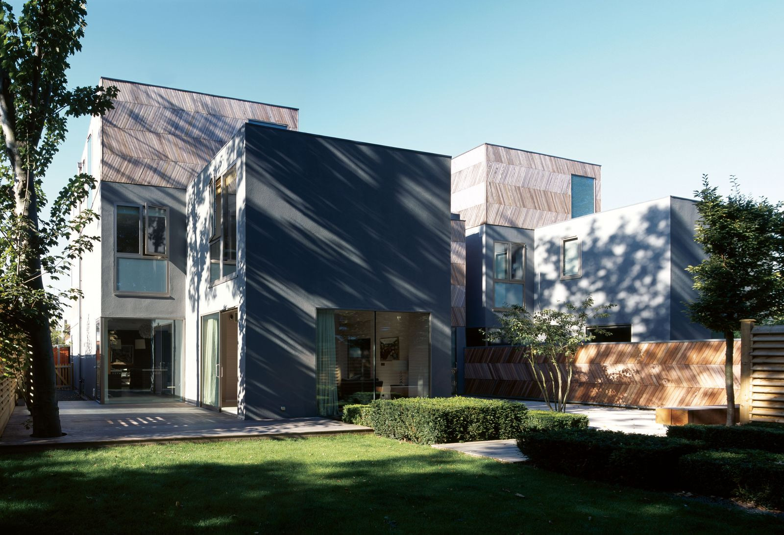Obě dvě „městské chaty“ se nachází v Londýně a byť se rozkládají na nevelkých parcelách, každá má užitnou plochu 350 m2. Pozemek je poměrně unikátní, jedná se o zadní, zbytkový dvorek s výhledem přes trávník bowlingového hřiště. Domy jsou pojaty jako viktoriánský dům obrácený naruby. Smrčkový steh (neboli steh rybí kostry) tvořící fasádu domů je jindy typickým vzorem dřevěných podlah a jeho užití na povrchu vytváří iluzi tahací harmoniky. Vprostřed domů jsou atria, jež zároveň fungují jako světlíky a přivádí světlo k zavěšeným schodištím uvnitř. Otevřené prostory s vysokými stropy a zahrada se do sebe vzájemně zaklesávají. Sklepní prostor svými rozměry kopíruje plochu přízemí a navyšuje tak celkovou plochu domu. Obě stavení jsou vzácným příkladem osvíceného developera, který se chce svým záměrem vyrovnat kvalitě řemeslného provedení sousedních viktoriánských vil a přitom mluvit současným architektonickým jazykem.