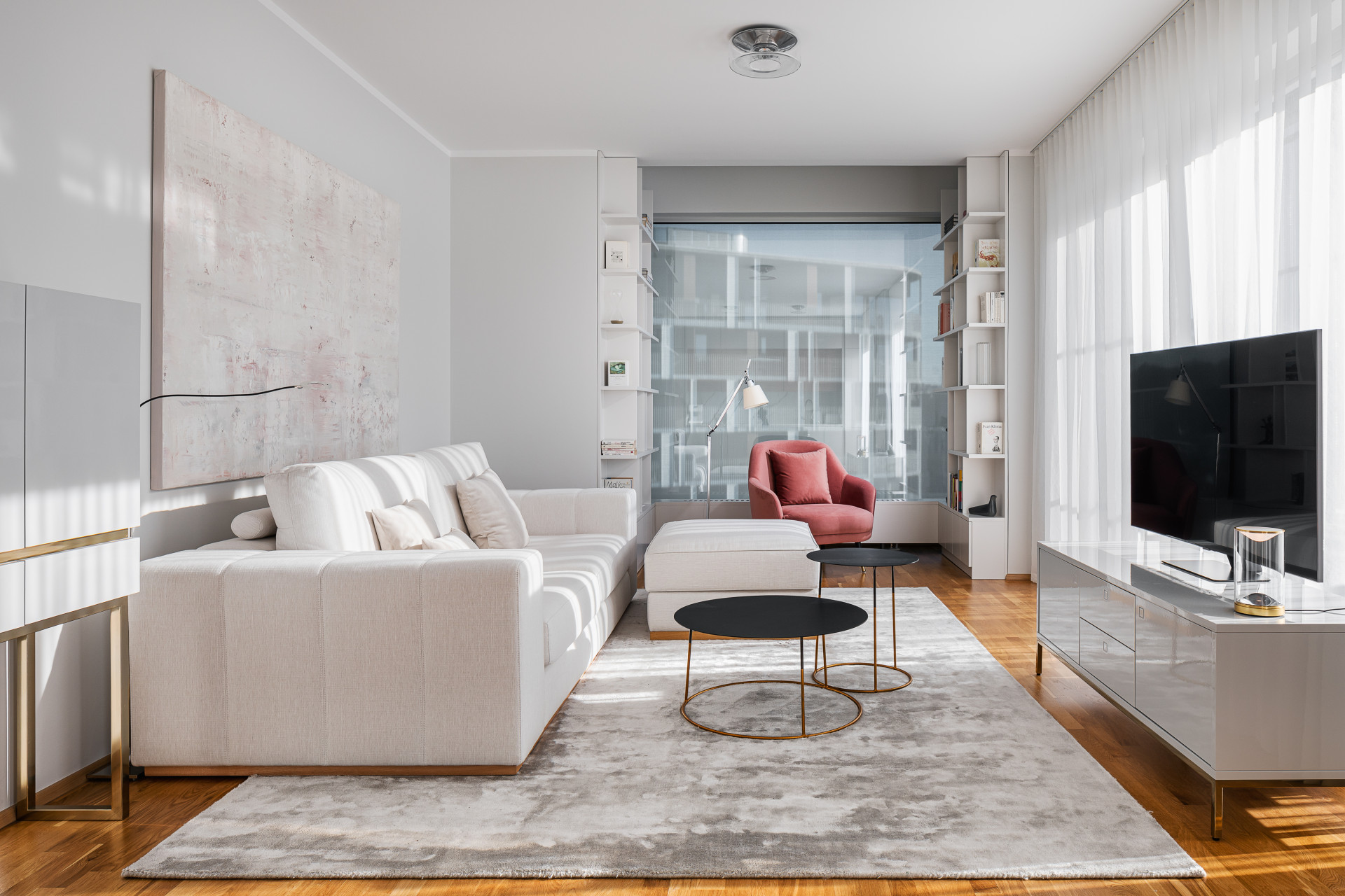 Styl, v němž bydlím, je víceméně minimalistický, ale přesto ne strohý. Mám ráda čisté linie a jednoduchost, a také kvalitní osvětlení a kvalitní materiály, neutrální a tlumené barvy, citlivě zakomponovaná umělecká díla. Všeho s mírou a čím více světla, tím lépe.