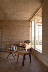 Po materiálové stránce doplňuje bambusové struktury pohledový beton, z něhož je tvořena hlavní nosná konstrukce navržená tak, aby odolávala případnému zemětřesení. Betonový rám vyplňuje zdivo z místních hliněných cihel, které je schopno absorbovat vlhkost a ochlazovat tak vnitřní prostory.