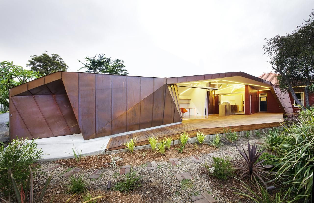 Ohýbané tvary vytvářejí přístřešek, poskytující v létě zastínění a umožňující zimnímu slunci proniknout do prostoru pasivního vytápění. Přístavba vdechuje starému, nedostatečně využívanému domu nový život při zachování 95% původního materiálu stavby. Konstrukce střechy zvyšuje kapacitu záchytu dešťové vody a světlíky podporují závislost na přírodním denním osvětlení. Prostory jsou přirozeně větrané a střecha vysoce izoluje, aby minimalizovala tepelný ohřev. Koncepce exteriéru zahrnuje terasu z palubek a velkou přírodní zahradu, eliminující potřebu trávníku.