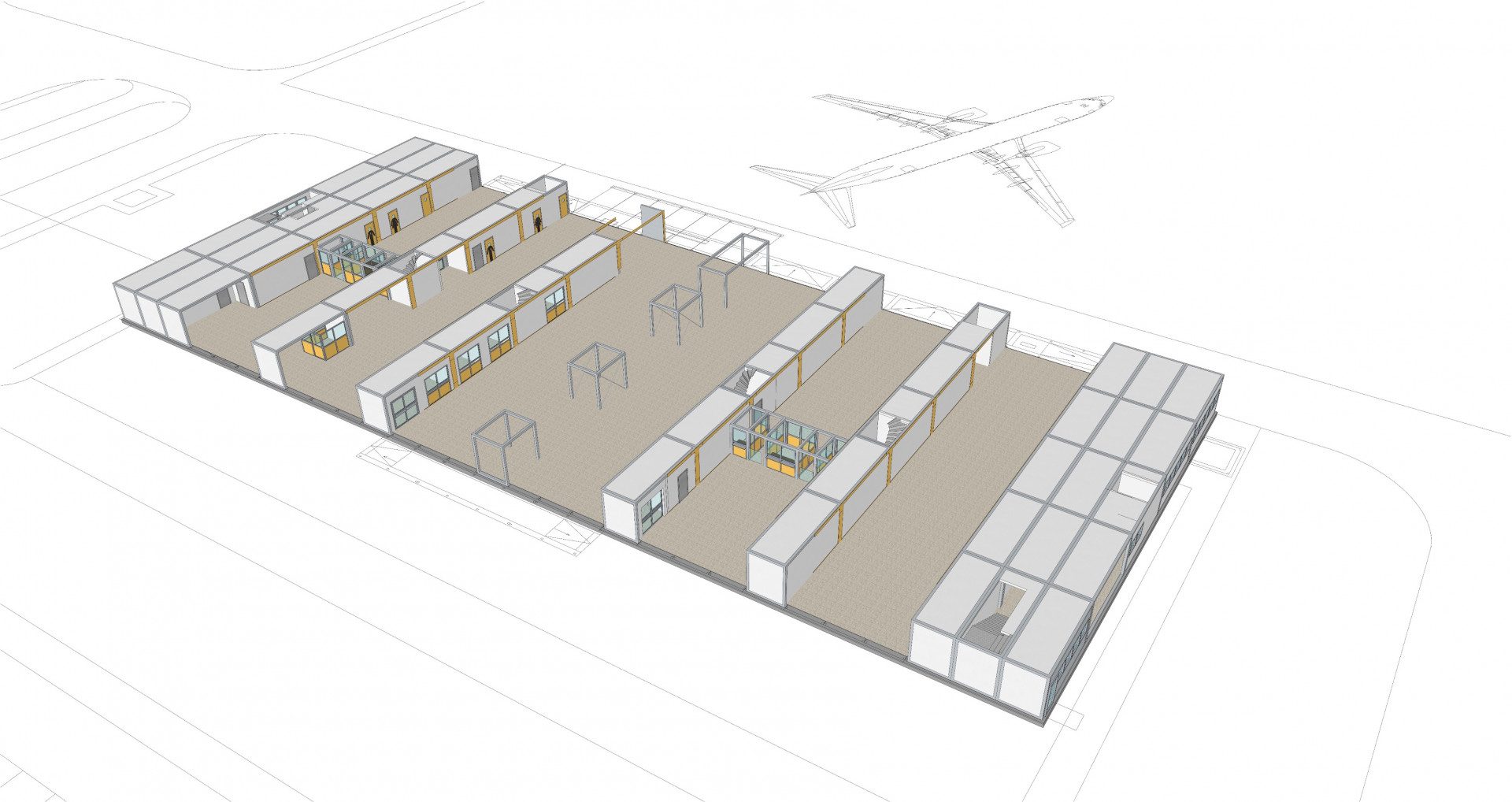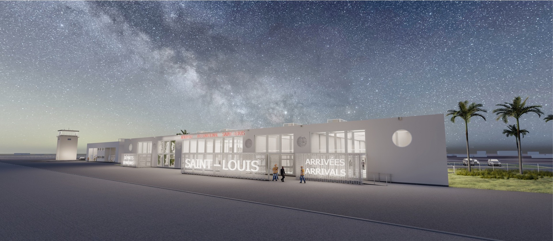 Letištní terminál v Saint-Louis tvoří 111 modulů, budovu hangáru dalších 31. Pro letištní haly je přitom příznačný otevřený a rozlehlý prostor, kterého není prací s jednotlivými konstrukčními prvky snadné dosáhnout. Splnit tento aspekt tak bylo podle inženýrů z KOMA Modular velkou výzvou. Na ideální řešení nakonec přišli společně s architekty ze studia Borci. Na sebe naskládané moduly tvoří šest řad, mezi nimiž je železná konstrukce, která nese střechu. Díky takto vzniklé velké užitné ploše dokáže letiště odbavit až jeden milion cestujících ročně.