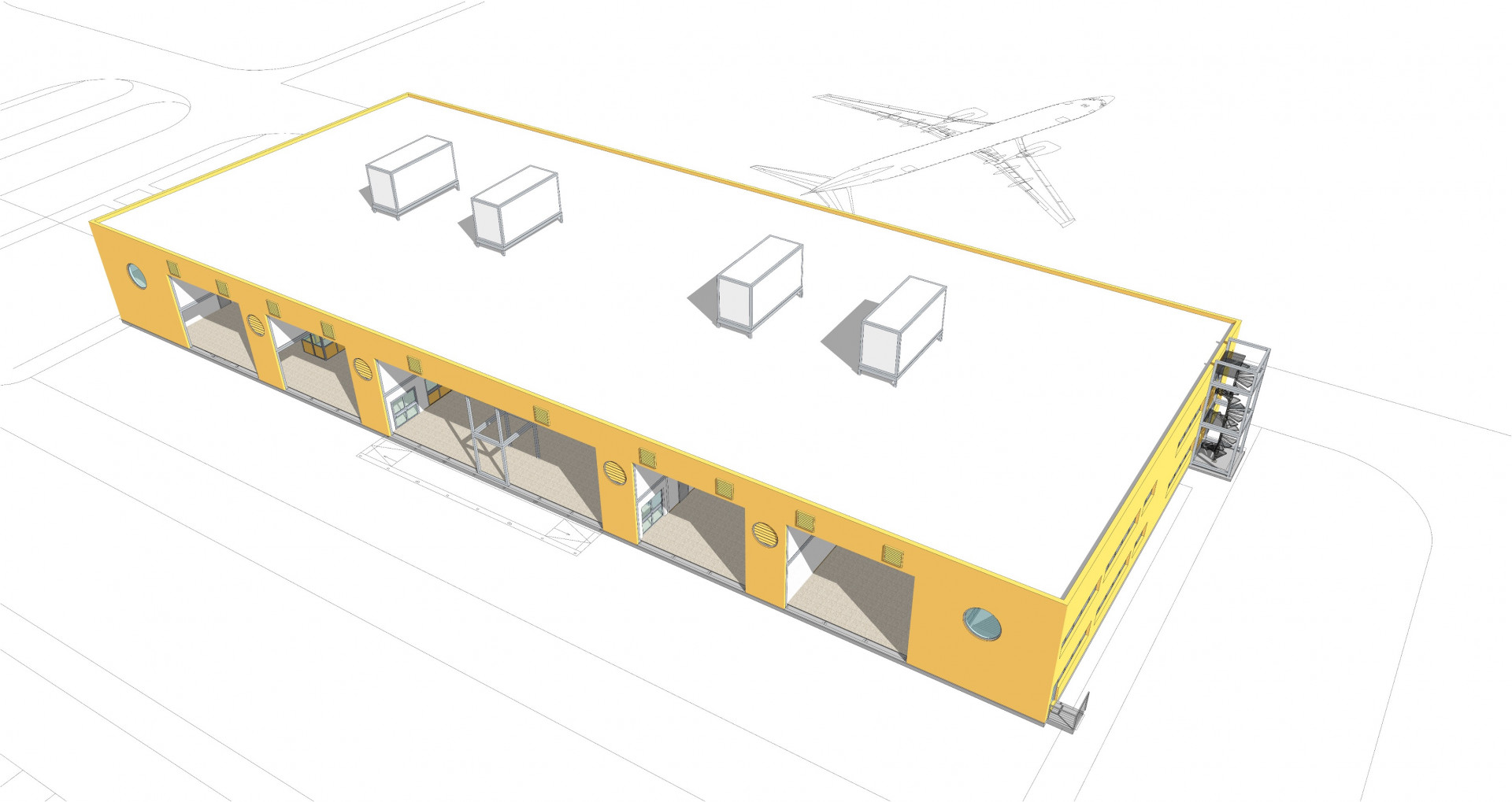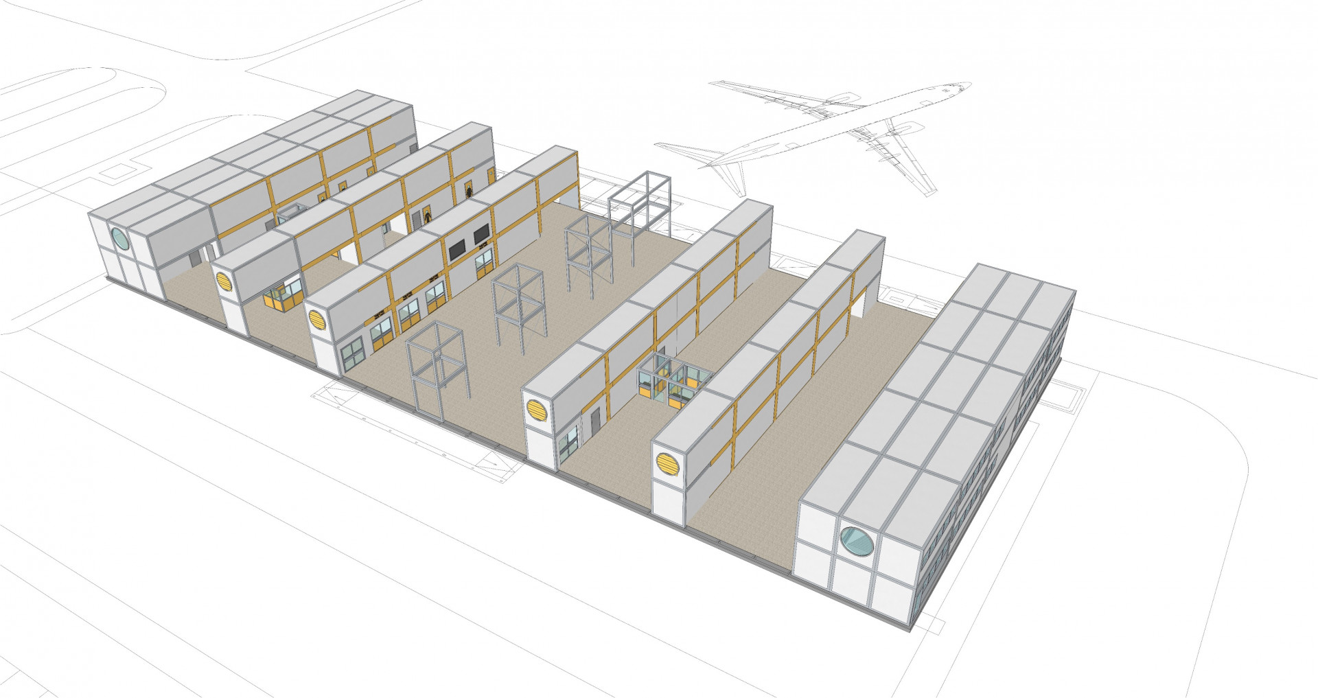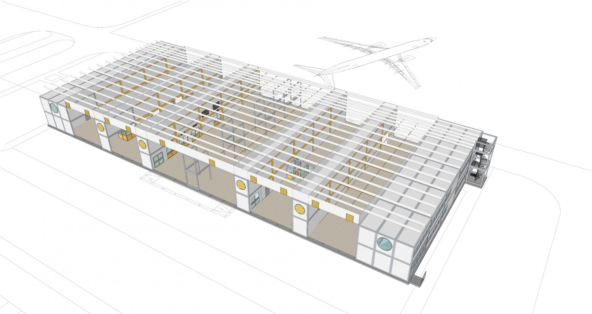 Hlavním dodavatelem celé stavby byla společnost specializující se na elektronické a elektrické vybavení pro letiště a heliporty Transcon Electronic Systems z Frýdku-Místku. Společnost KOMA Modular pak pro realizaci vyrobila všechny moduly ve své továrně ve Vizovicích. Postavena je z nich jak letištní hala, tak hangár pro letadla.
