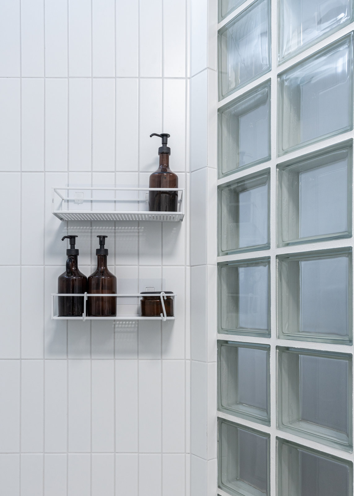 Vybouralo se také dožilé umakartové jádro, které nahradila nová koupelna s příčkou z luxfer. Ta současně plní roli zástěny sprchového koutu.