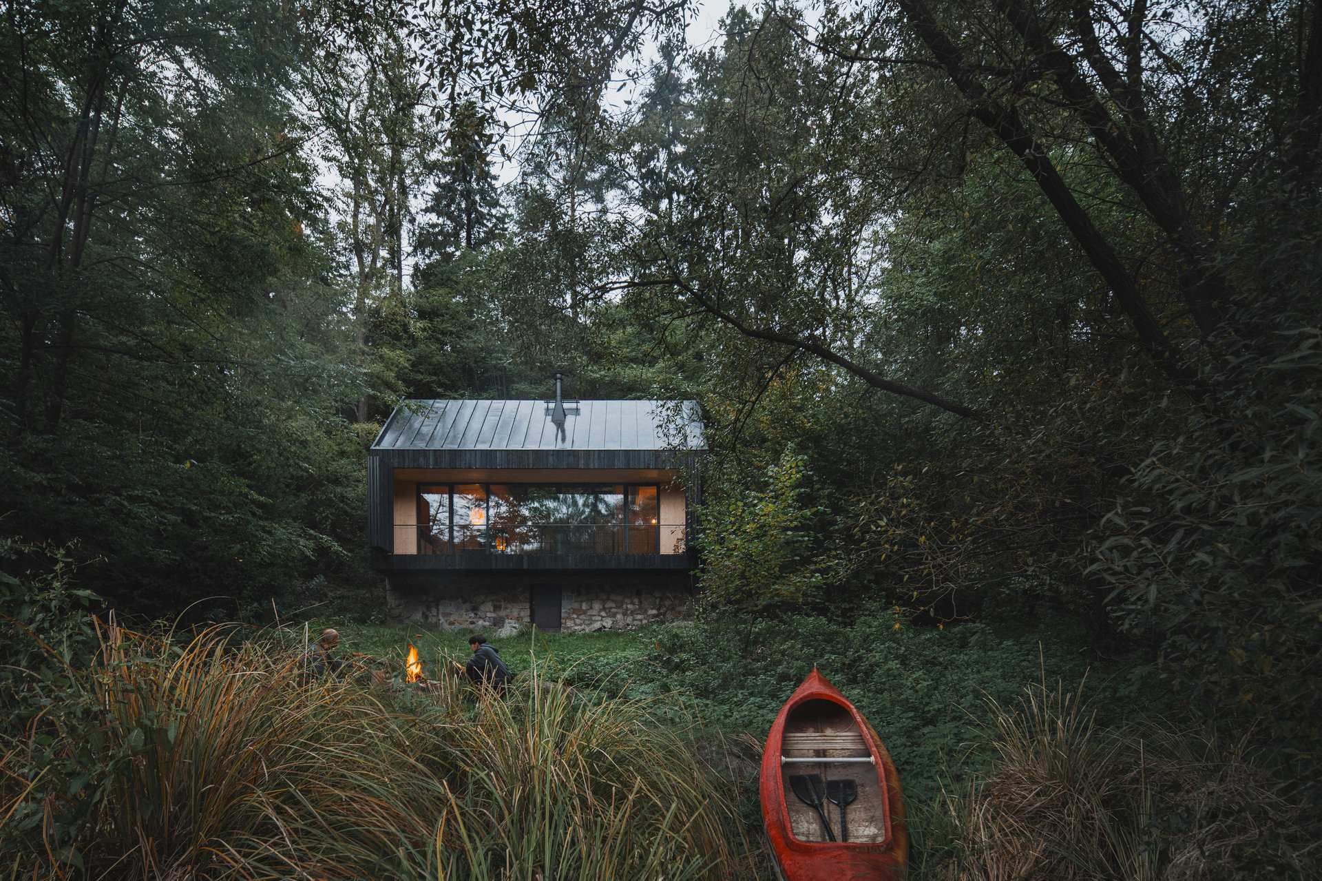 U řeky lze posedět u ohniště nebo vyrazit s kánoí přímo na vodu a večer ji uklidit do prostoru původních základů. Nová chata nabízí útočiště před hektickým světem stejně jako její předchůdkyně, jen s větším komfortem.