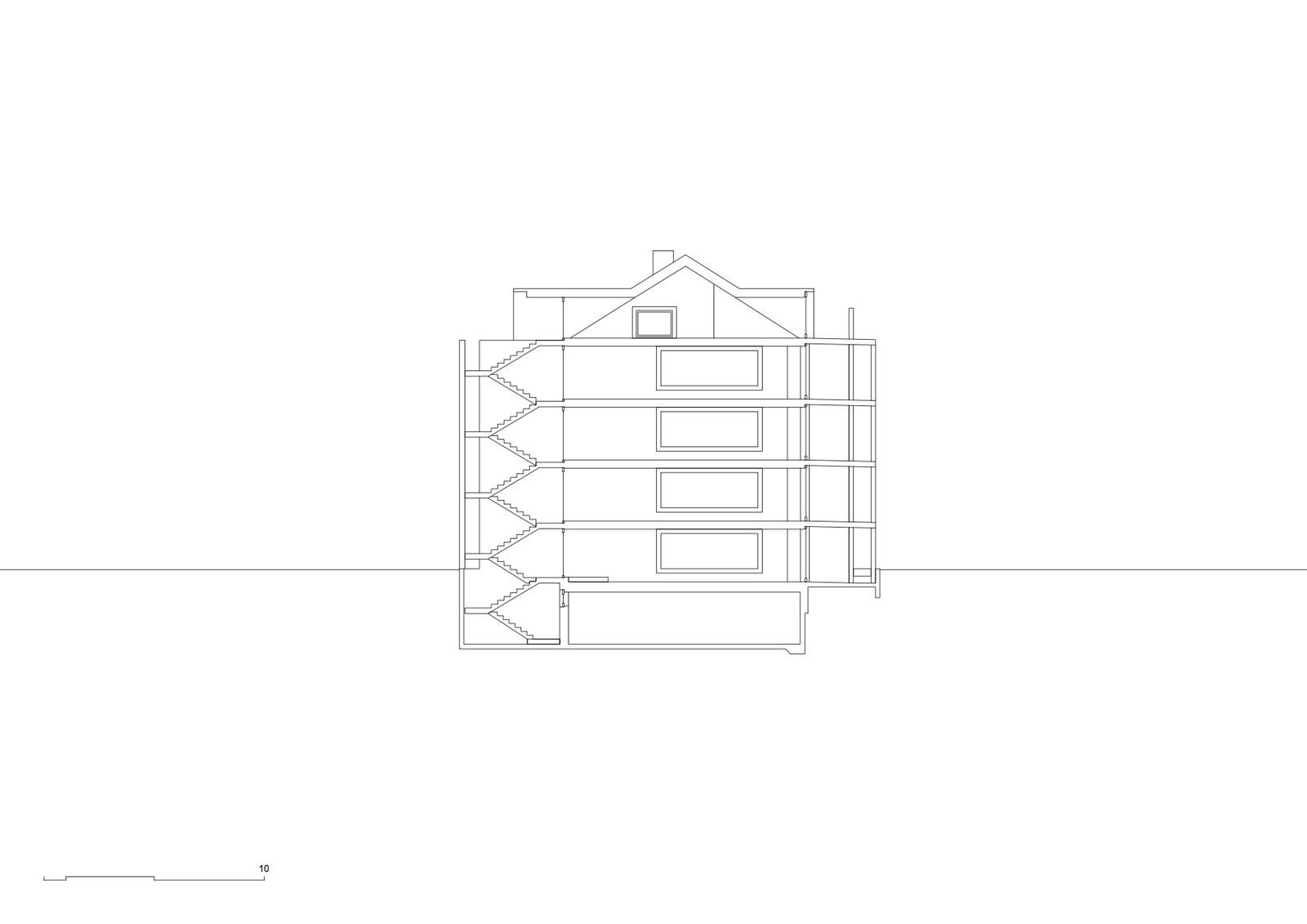 Raphael Zuber se s investorem domluvil na výstavbě bytového domu, který maximálně využije nepravidelnou plochu pozemku. Při volbě dodavatele hrály nejdůležitější roli dva faktory – spolehlivost firmy a nízká cena. Vypisovali proto nejrůznější tendry a vždy vybírali nejvýhodnější nabídku. Využívali tak výhradně prefabrikovaných výrobků a jiných produktů, které se na trhu běžně objevují. „Neměli jsme čas řešit pěkné materiály a sofistikované povrchy. To nás nutilo přemýšlet trochu jiným způsobem, než jsme zvyklí. Soustředili jsme se primárně na prostor,” dodává švýcarský architekt.