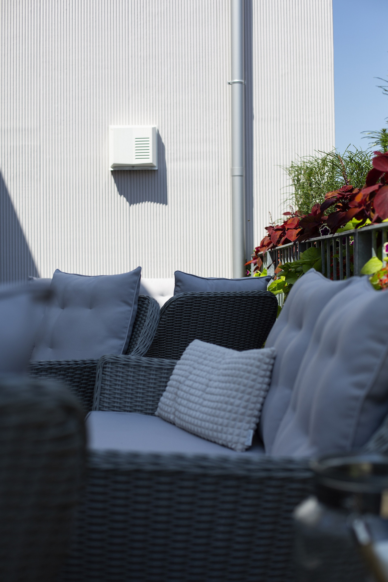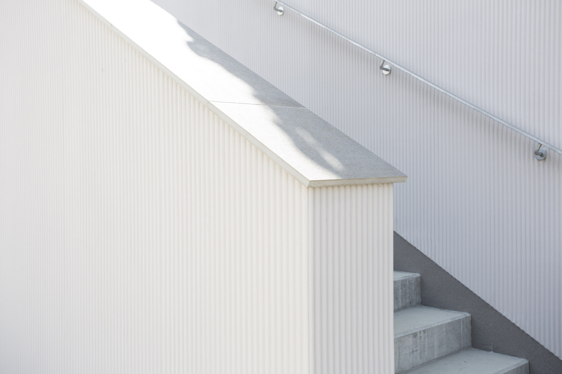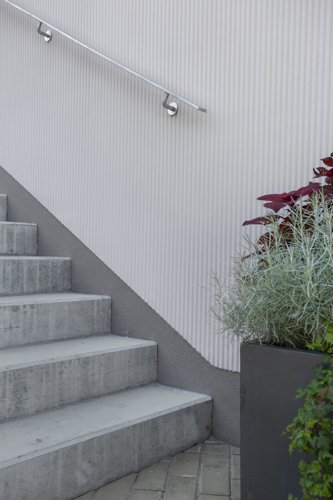 Sedlová střecha a typická obdélníková půlená okna nejen ve štítu se inspirují původní podobou, takže stejně jako pálená střešní krytina ladí i s okolní zástavbou. Pro celkové působení budovy bylo důležité také zvolit vhodné řešení fasády. Architekti se rozhodli pro přírodní vápennou omítku, kterou realizovala firma Qualibau a která díky svému pravidelnému reliéfu a šedofialovému odstínu zajímavě pracuje s měnící se intenzitou a teplotou slunečního světla.