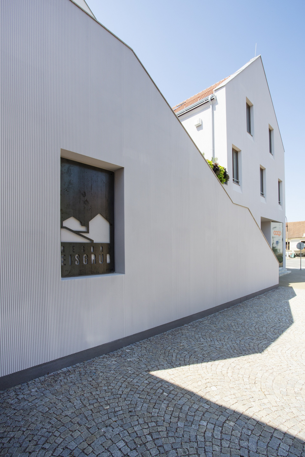 Před dvěma lety dokončilo architektonické studio Létající inženýři pozoruhodný projekt přestavby normalizačního objektu potravin a penzionu, kterým svým původním tvarem vyčníval ze zástavby historického centra Lednice. Resort Eisgrub, jak se nově budova po německém názvu města jmenuje, dnes díky zásahu architektů obsahuje dvacítku apartmánů, přičemž v přízemí zůstal zachován provoz samoobsluhy.