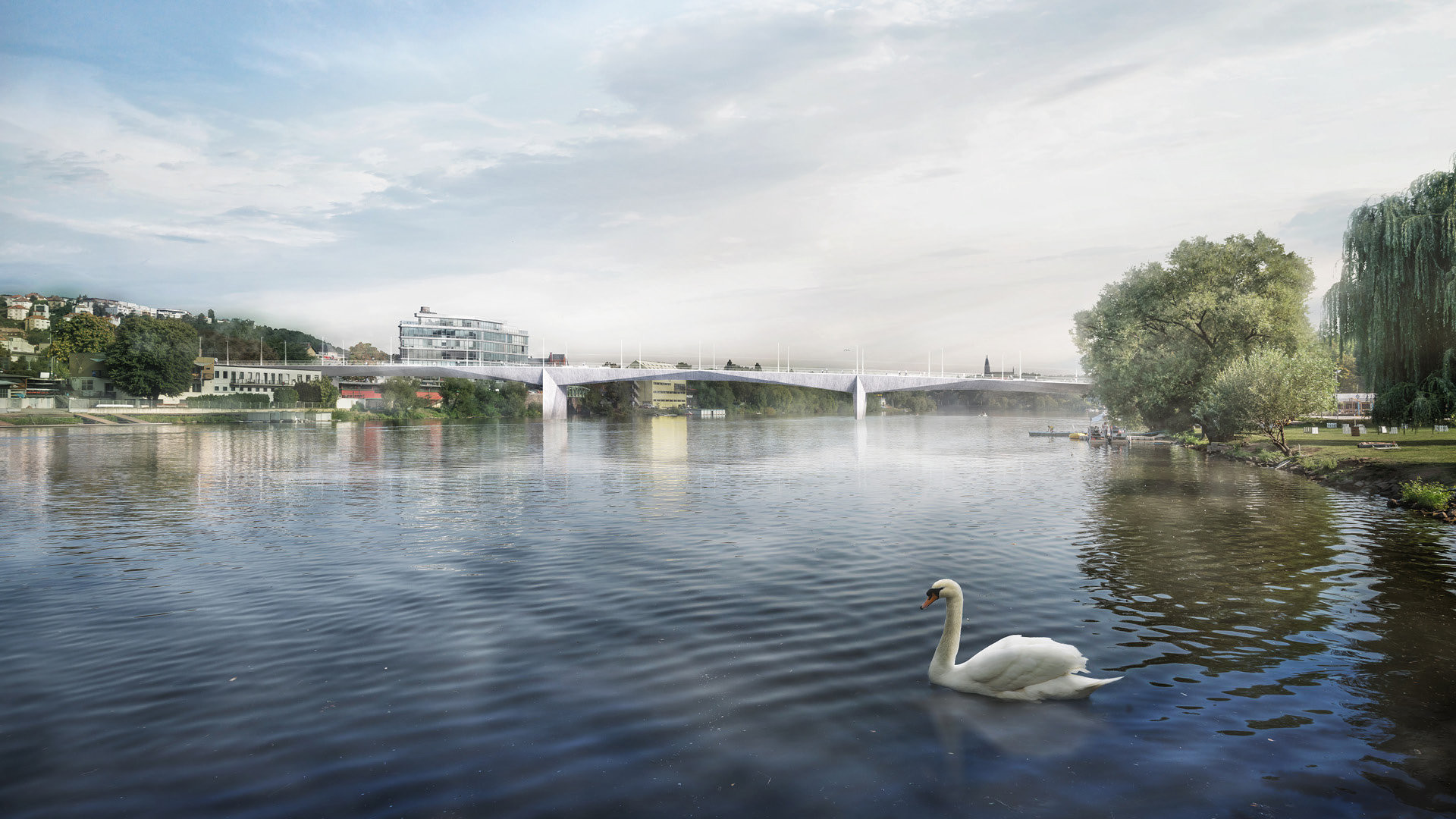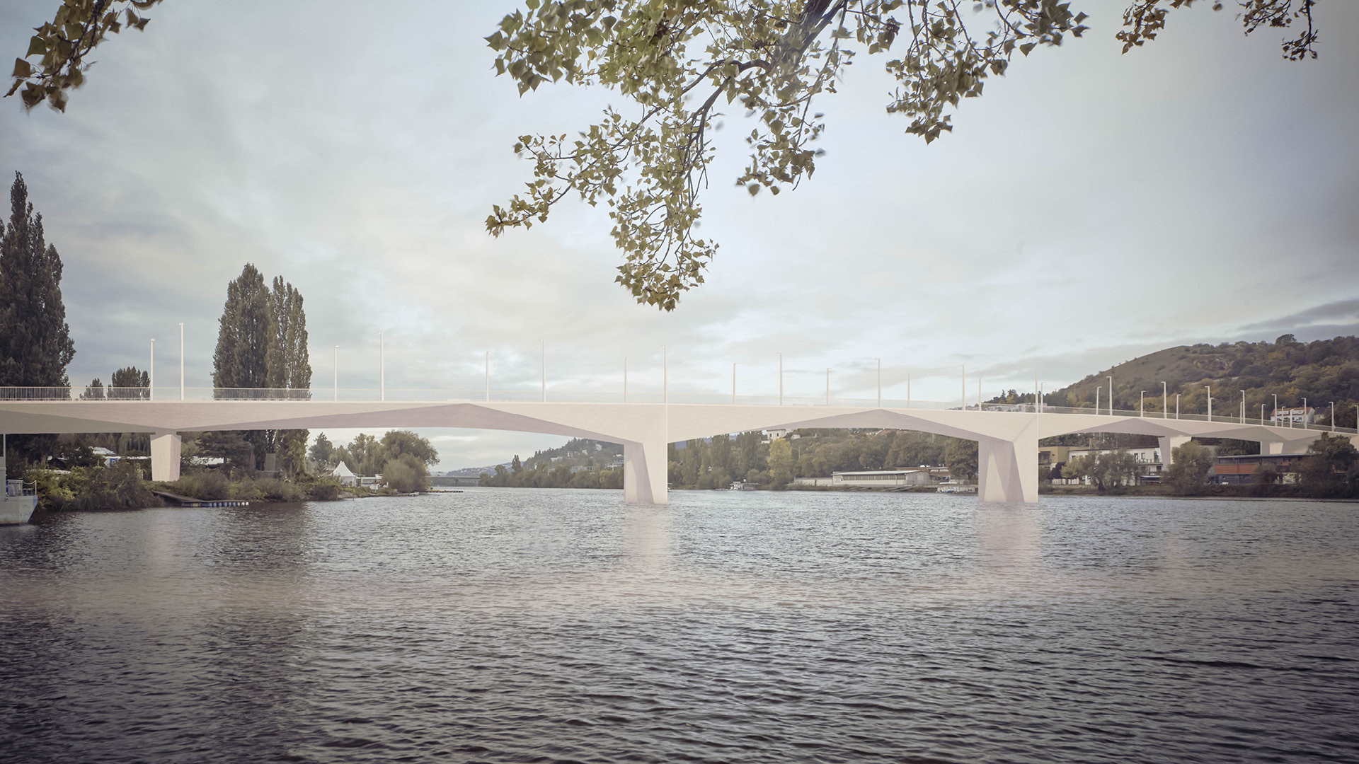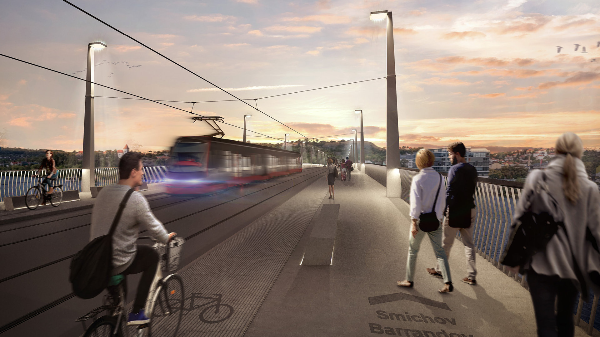 Myšlenka propojit Smíchov a Podolí novým mostem se v územních plánech objevuje desítky let. Klíčový posun ale přinesla architektonická soutěž, kterou Praha vyhlásila v roce 2017. V ní zvítězil návrh Ateliéru 6 a studia TUBES – řešení, které dokázalo skloubit technické požadavky, kontext jednoho z nejcennějších pražských panoramat i charakteristické formování inspirované českým kubismem. Druhé místo obsadil návrh známého světového architekta Santiaga Calatravy.