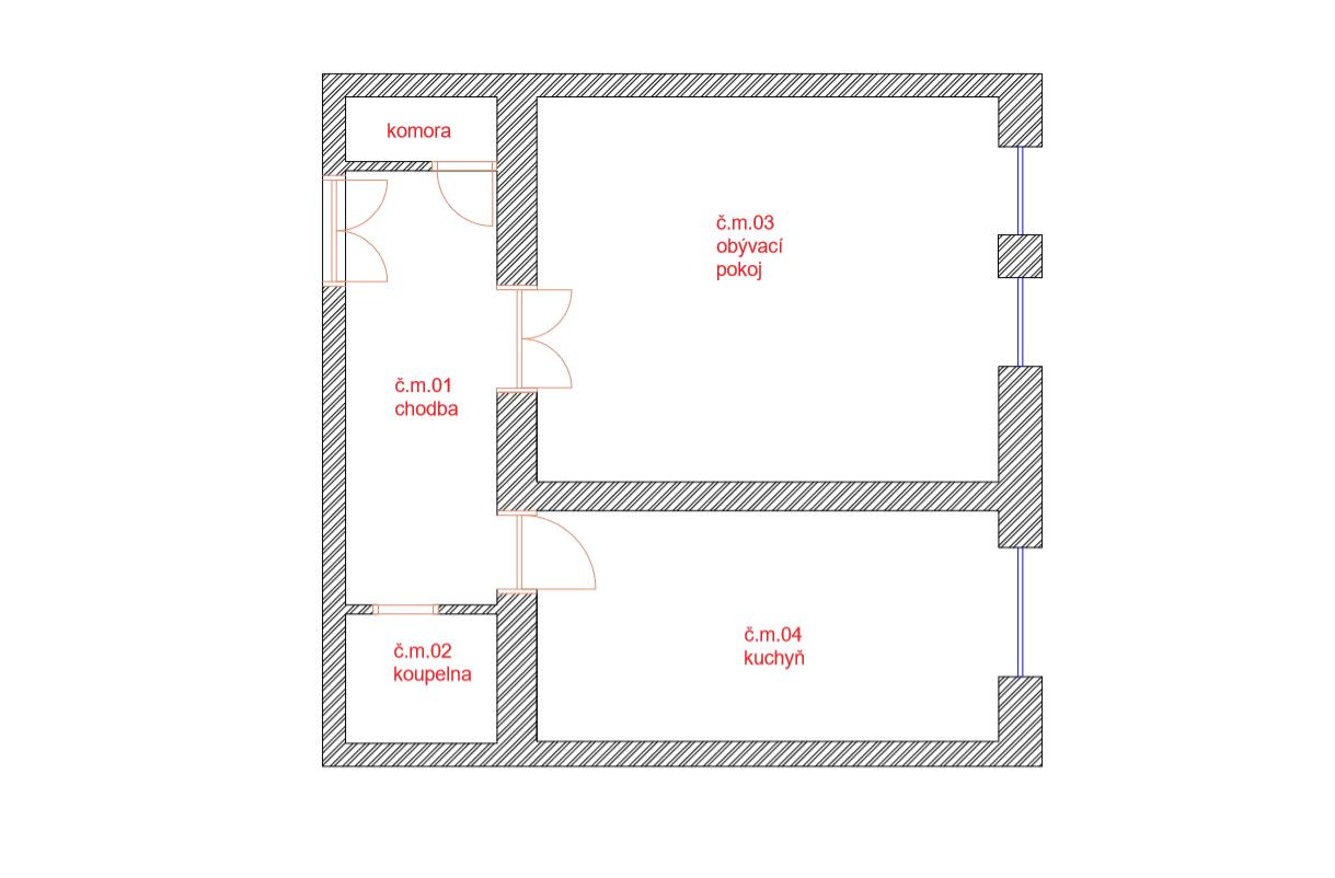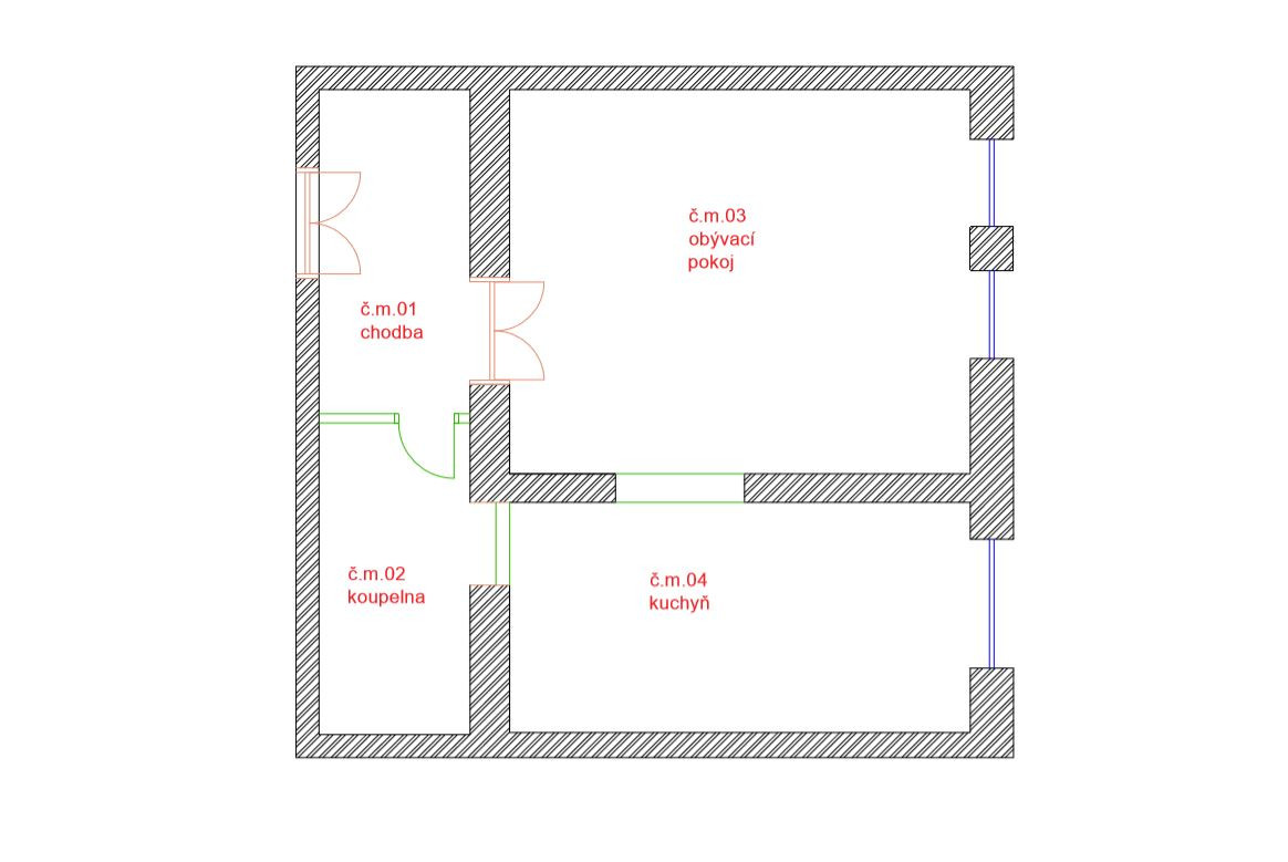 Byt Sekaninova, původní půdorys, DESIGNIST – Ivana Šustrová