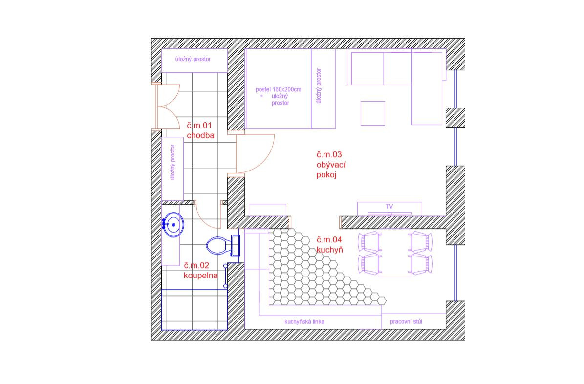 Byt Sekaninova, bourací půdorysí, DESIGNIST – Ivana Šustrová