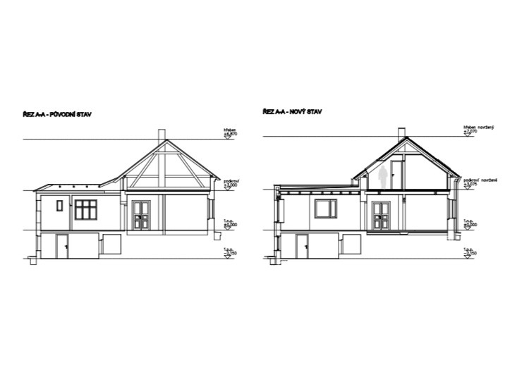 Rekonstrukce rodinného domu Chotutice, 2xpa, řez A-A