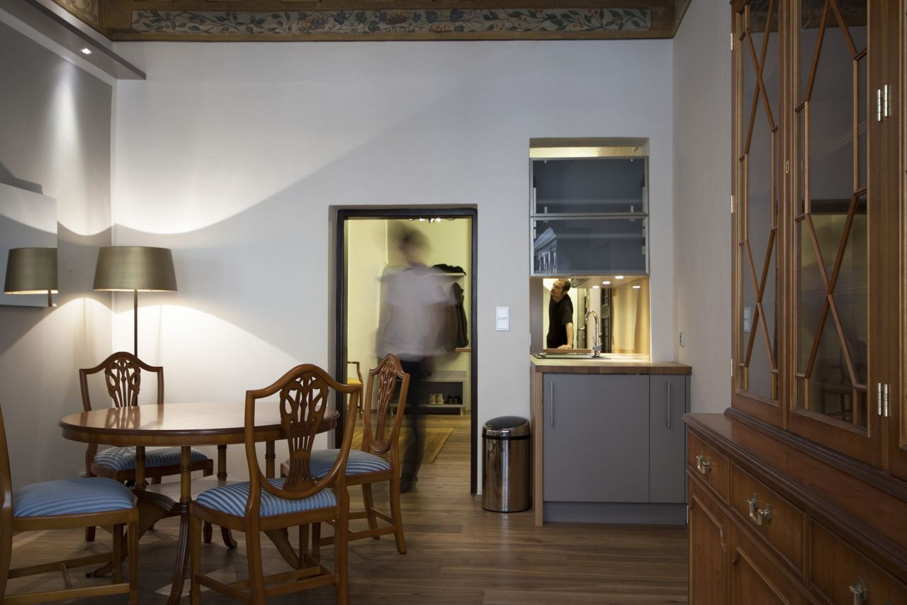 Intervenovat soudobými prostředky v historickém prostředí si vyžaduje odvahu, cit i pokoru. Autorům rekonstrukce renesančního bytu v pražském Starém Městě nic z toho nechybělo. V jejich návrhu se potkávají bohatě zdobené repliky původního nábytku s minimalistickými tvary současného vybavení.