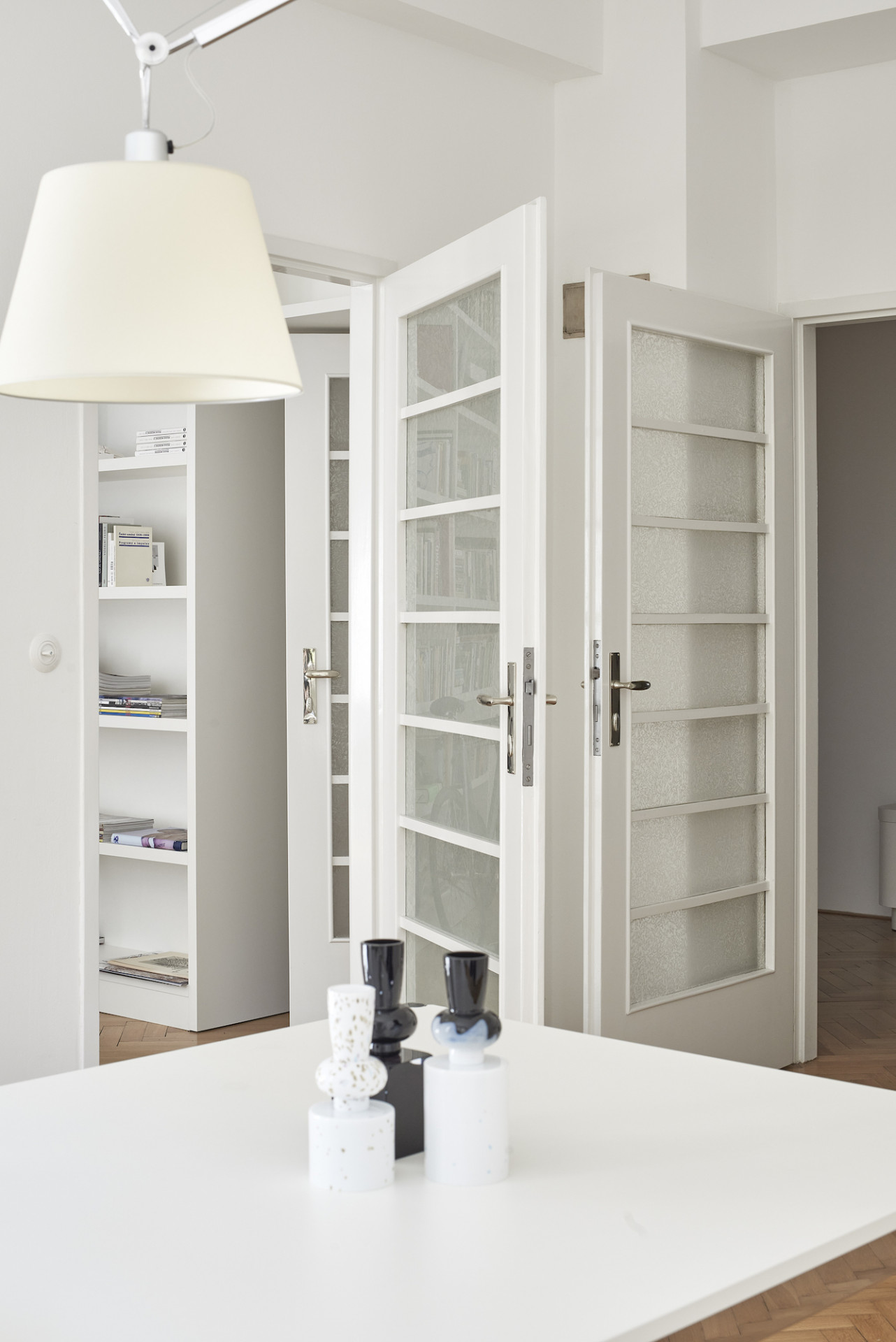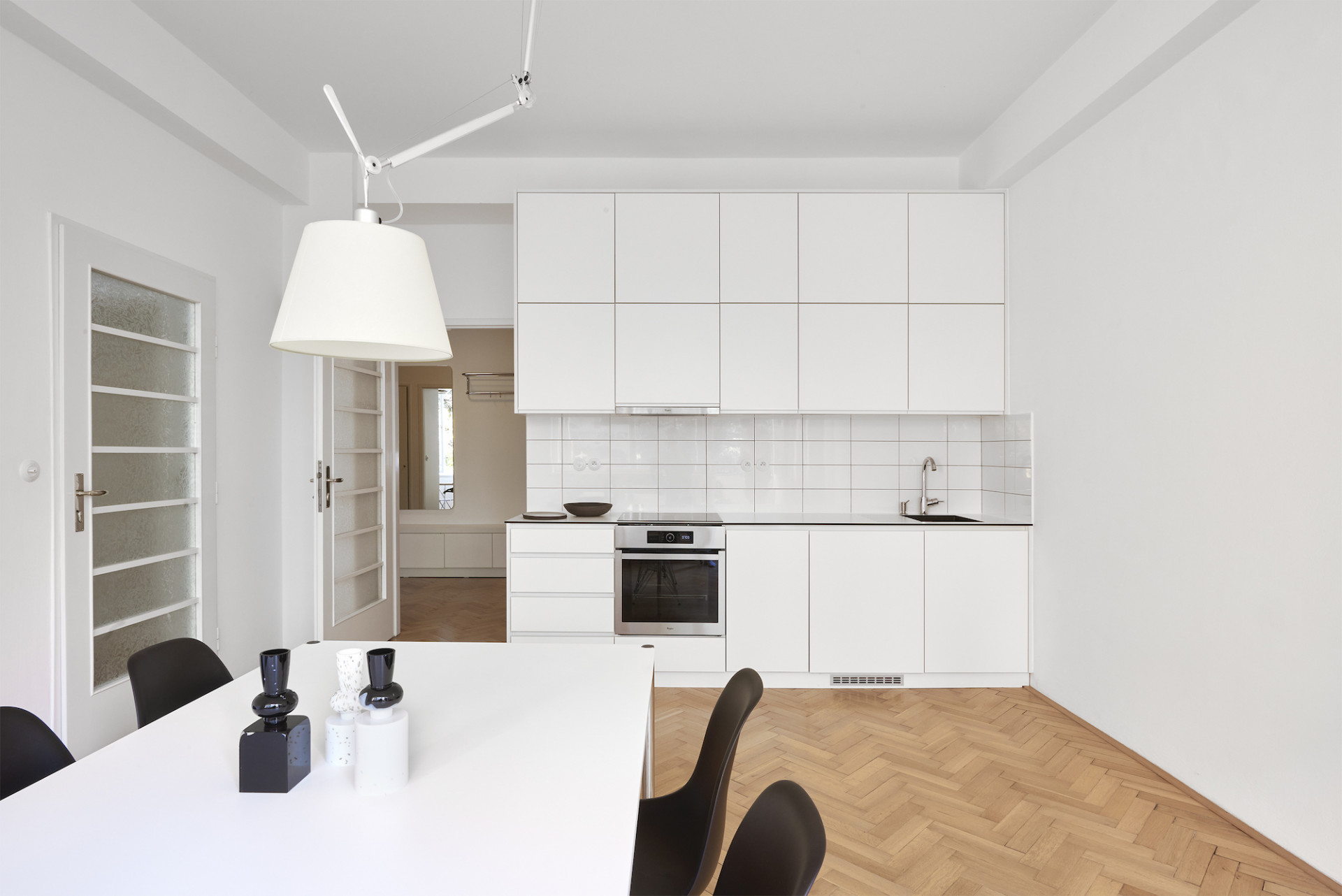 Rekonstrukce v režii 0,5 Studia zachovala a podtrhla funkcionalistický charakter pražského bytu