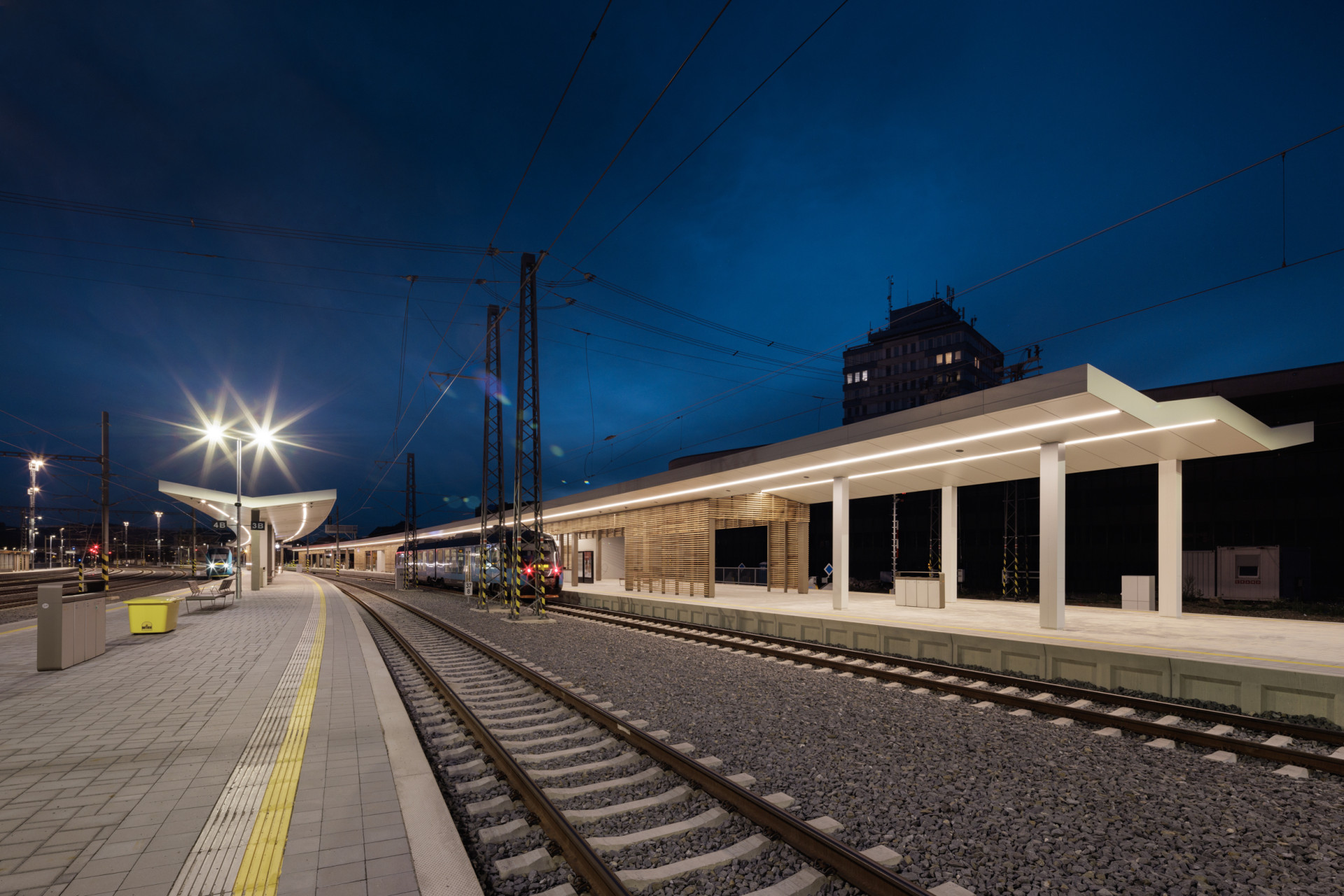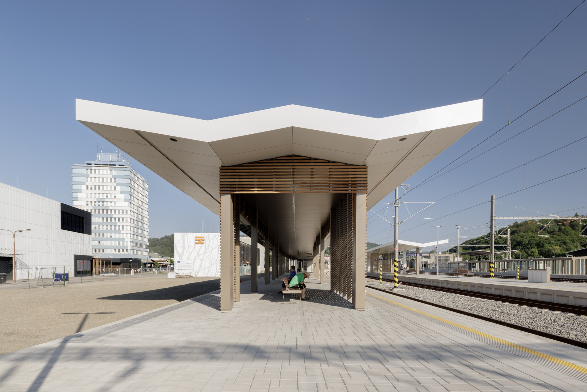 Dále vzniklo ostrovní nástupiště. Jde o klasickou vlaštovku nesenou jednou řadou sloupů. Barevné ztvárnění podhledu má evokovat stromořadí, s podobným motivem Egoé již dříve pracovalo v případě stanic Čelákovice a Praha-Zahradní Město. Střecha má tvar písmena V. Z výroby v Bílovicích putovaly do Vsetína také protihlukové panely z pryžového recyklátu, prvky drážního mobiliáře a zastřešení podchodů.
