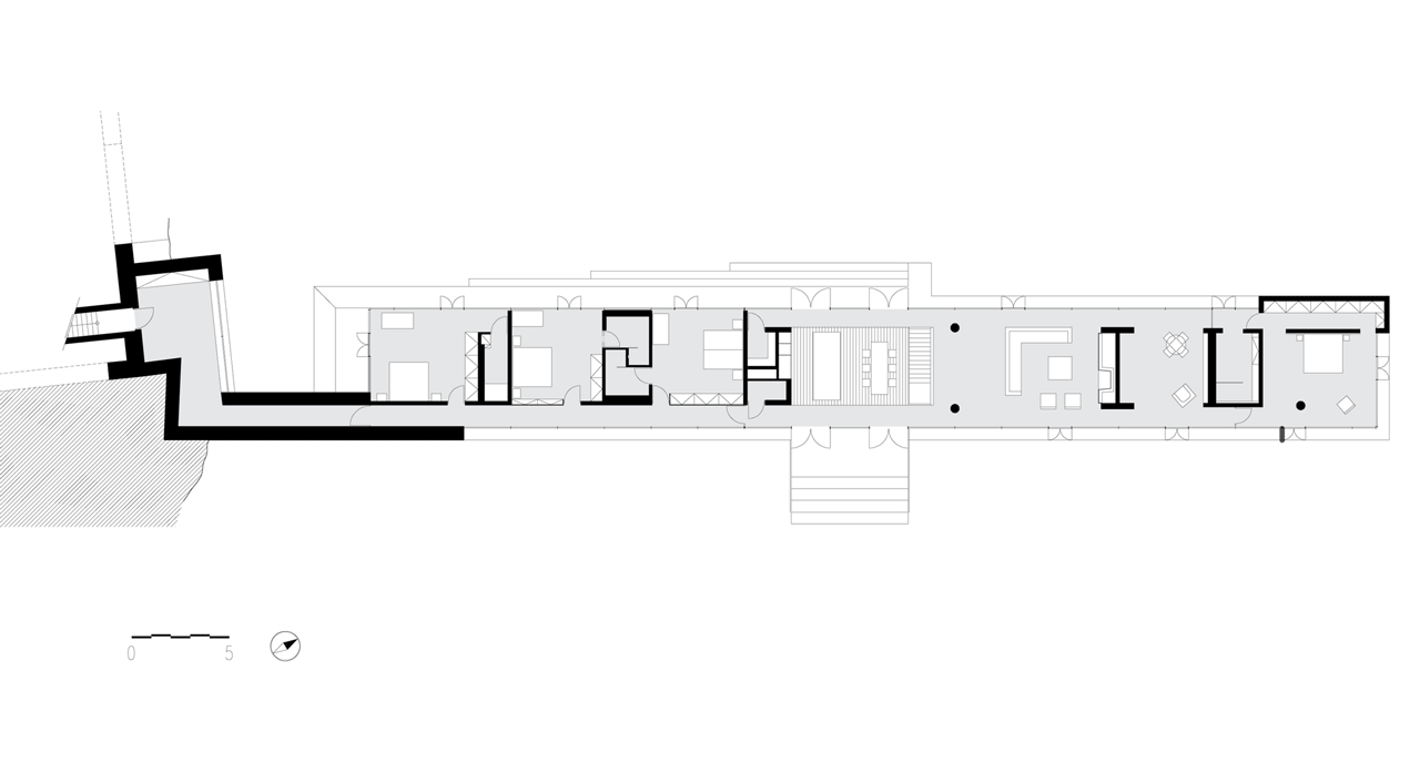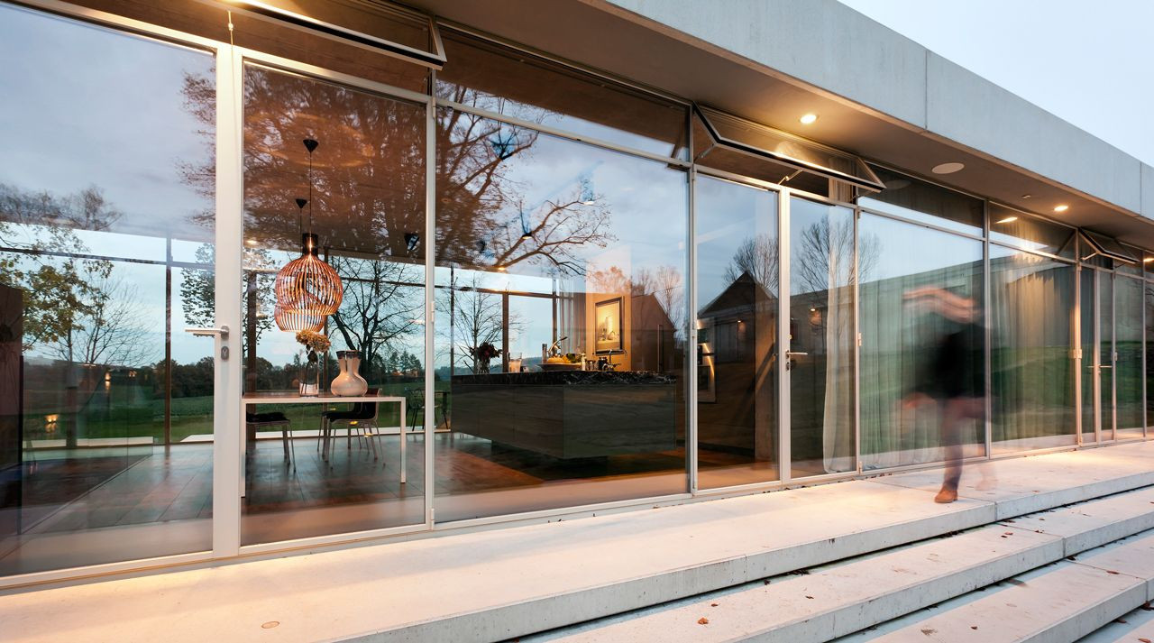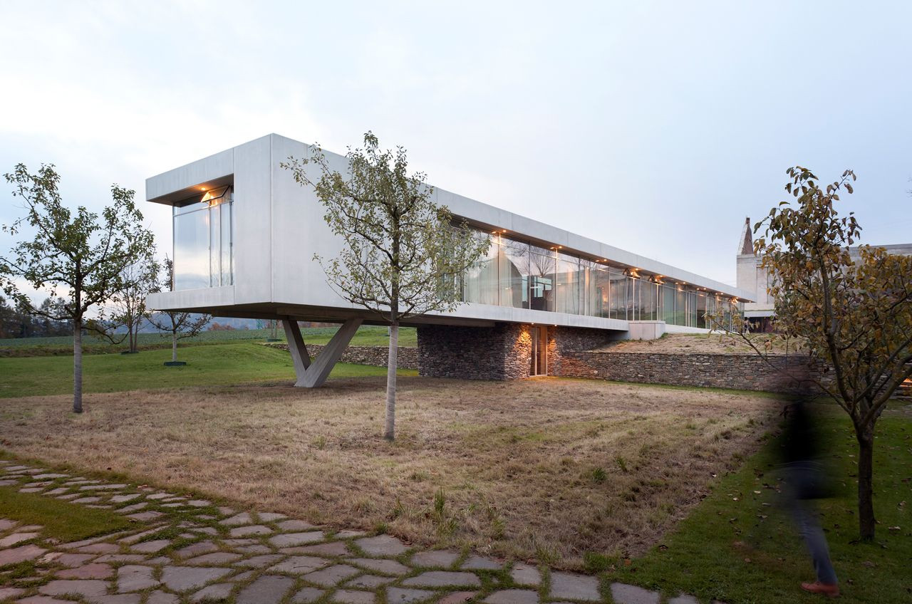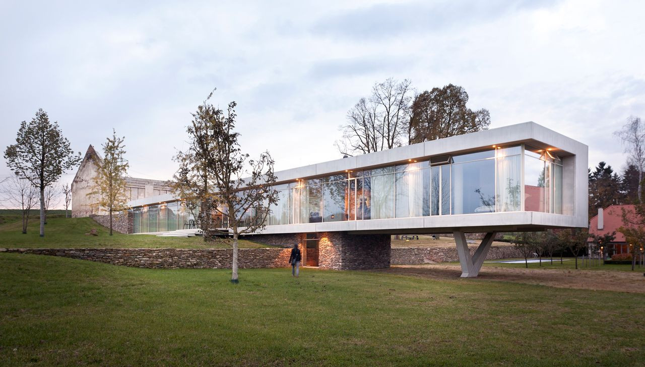 Pouze sklo a subtilní rámy, ohraničené shora i zdola betonovou deskou, kamenný sokl… a nic víc. Zdánlivá jednoduchost, která však ukrývá vysoký nadstandard, zabalený v kvalitních materiálech, stačí k vytvoření výjimečného výsledku. Tím je elegantní rezidence, která jako by se na jednom konci vznášela.