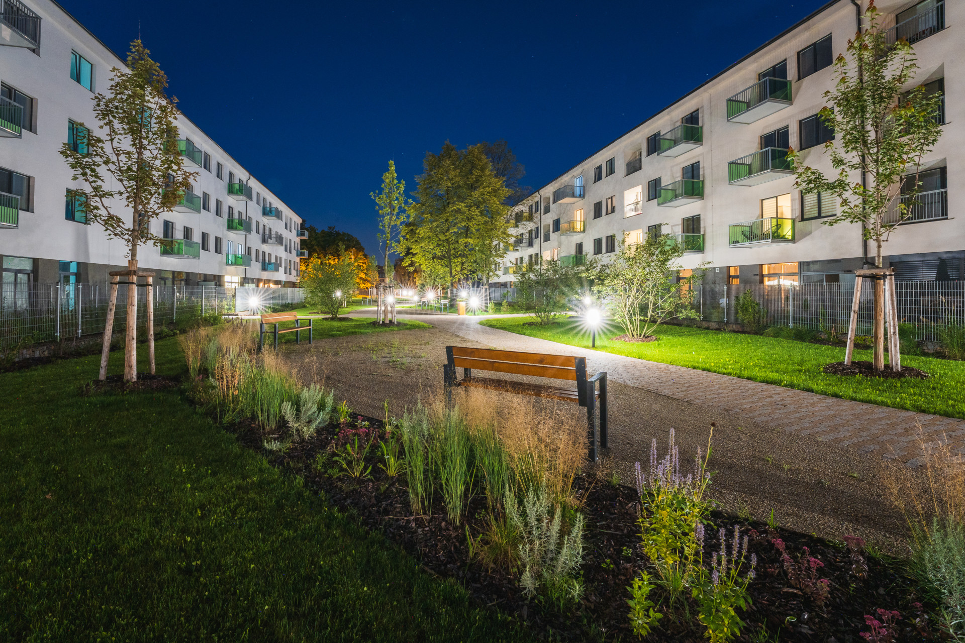 Jan Novotný, Pavel Hřebecký a Michal Šourek navrhli obytné domy tak, aby byl jejich dopad na životní prostředí z hlediska jejich celoživotního cyklu co nejmenší. „Mysleli jsme nejen na nové obyvatele a kvalitu života, ale také na životní prostředí, na co nejúspornější spotřebu energie a na zdravé vnitřní prostředí bytů, ke kterému přispívá volba stavebních konstrukcí a materiálů směřujících k nulové bilanci CO2. Vyrovnat se s klimatickou změnou pomáhá lokalitě také přívětivý park efektivně hospodařící s dešťovou vodou, která je následně využita pro zavlažování zeleně,“ říká architekt Jan Novotný.