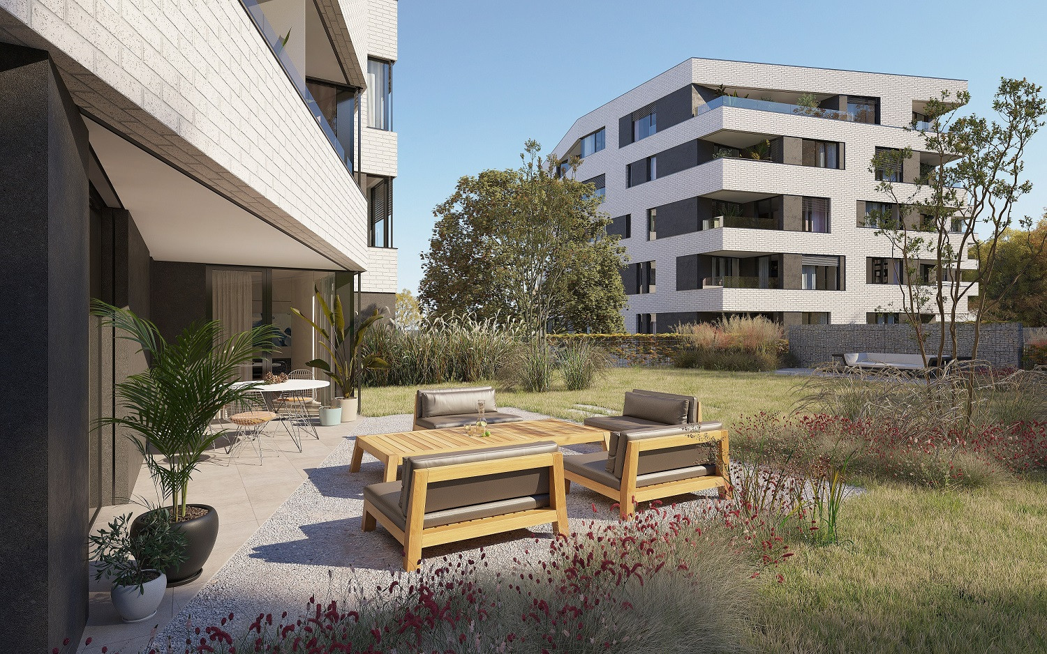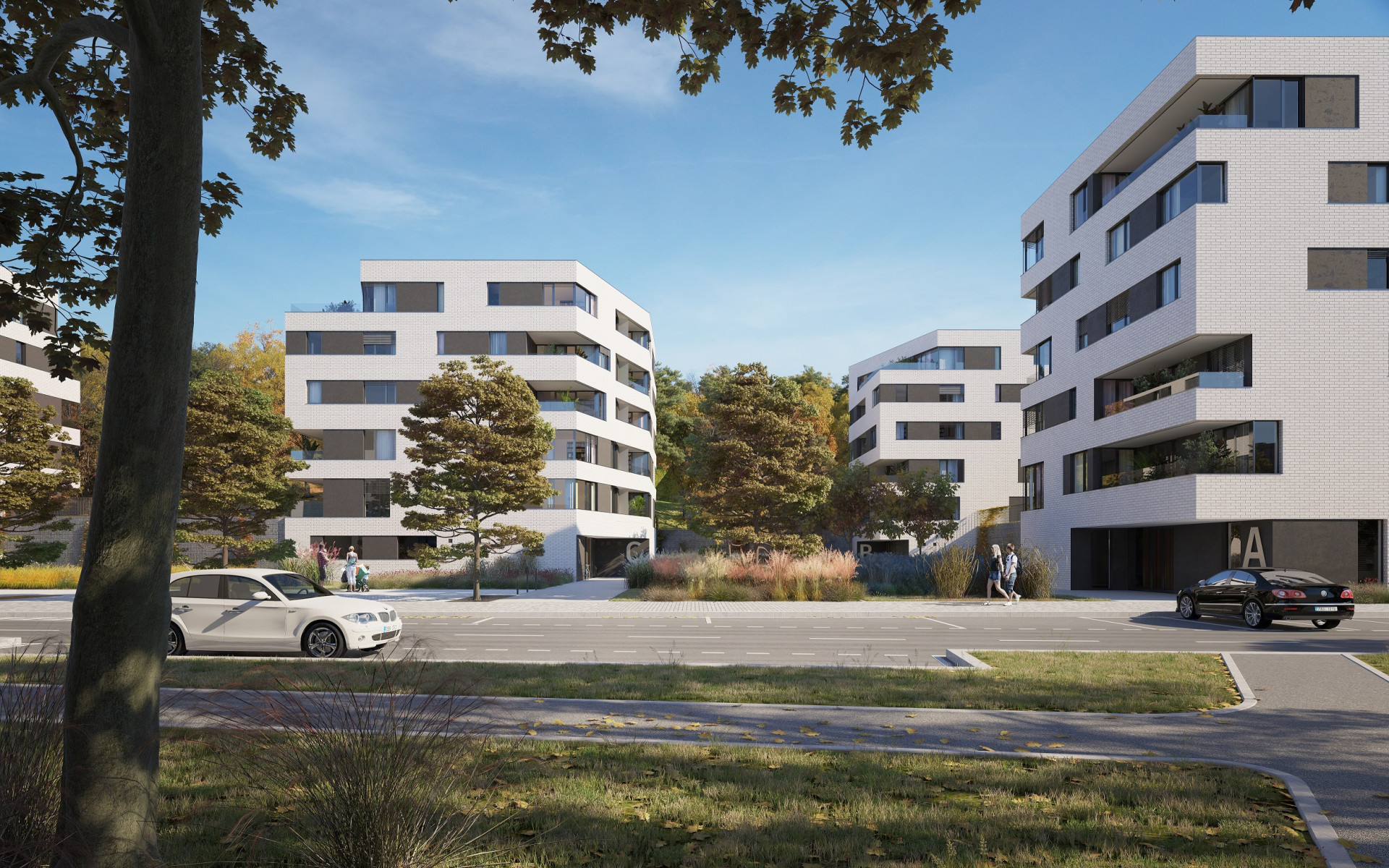 Všechny bytové jednotky budou mít výhled jak na město, tak do zeleně. Byty v přízemí obohatí vlastní předzahrádky na střeše garáží, které se budou přirozeně propojovat s místním svažitým terénem. Plocha mezi bytovými domy bude zkultivována tak, aby se zde dalo přirozeně pohybovat a trávit volný čas. Dojde k vysazení zeleně, mezi kterou budou procházet pěší nebo pojezdové komunikace. Parter domu bude s těmito prostranstvími komunikovat prostřednictvím prosklení.