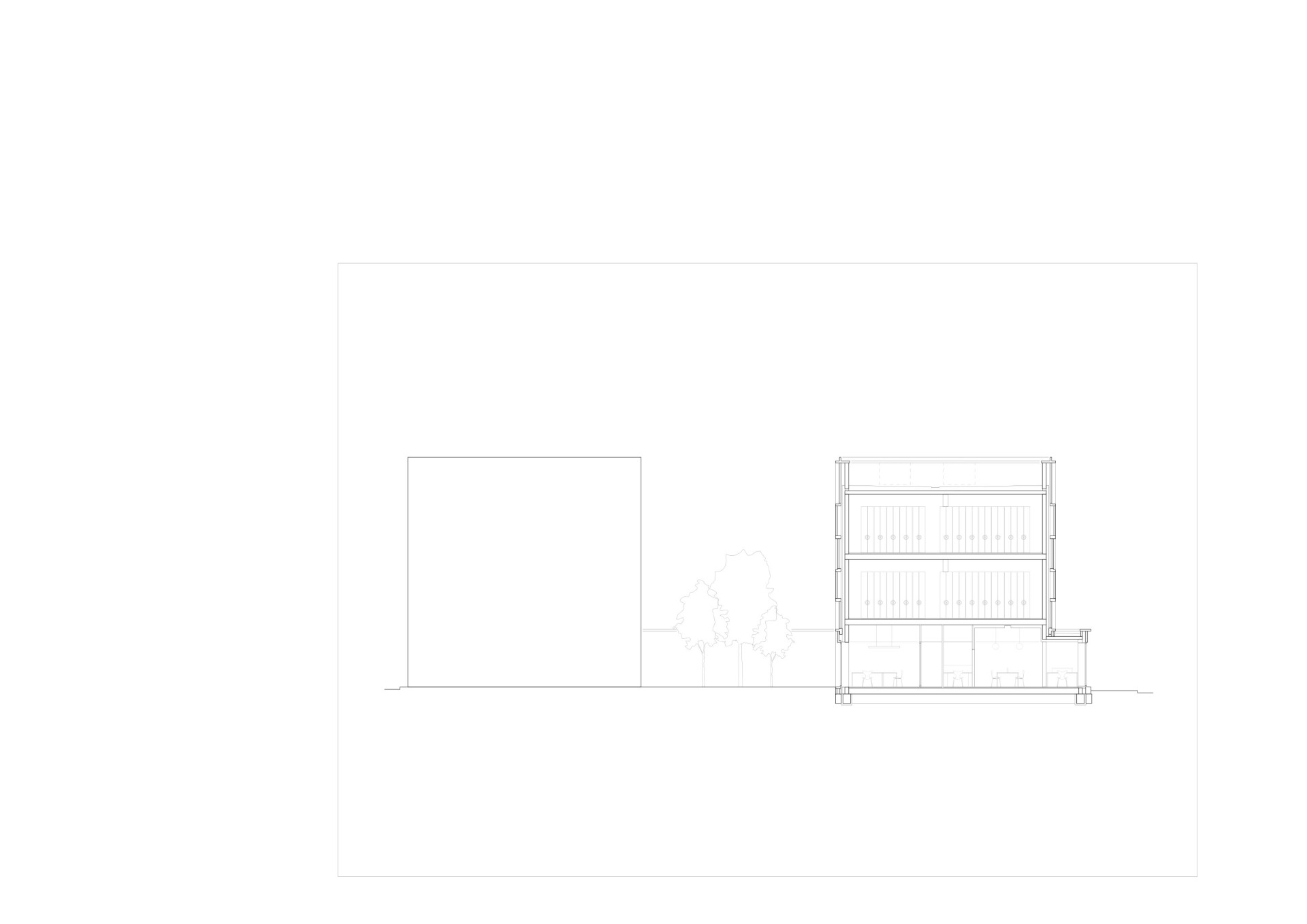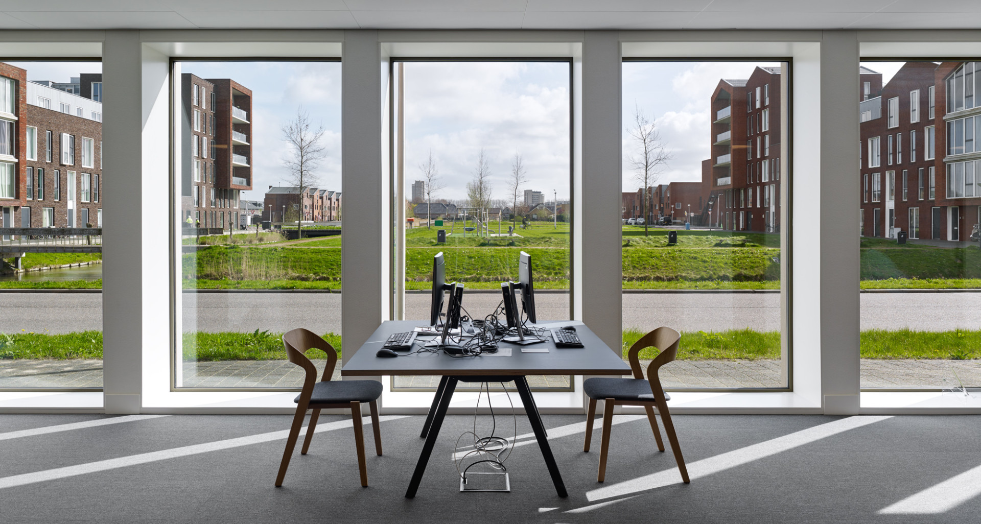 Organizačně je budova rozdělena do dvou celků. Kanceláře, dílny, čítárny a kavárna, které vyžadují denní světlo v přízemí a archivní depozitáře v patrech nad nimi, které jsou světlu naopak uzavřeny. Při pohledu z parku se tento koncept napřímo propisuje do kontrastního obrazu stavby. Robustní cihlová hmota archivu spočívá na bílém betonovém soklu orientovaném do parku, který tvoří otevřený parter a odkazuje na podobu veřejných budov v centru města. Zde se nachází veřejné čítárny a kavárna, poskytující návštěvníkům příjemné místo ke studiu archivních materiálů.