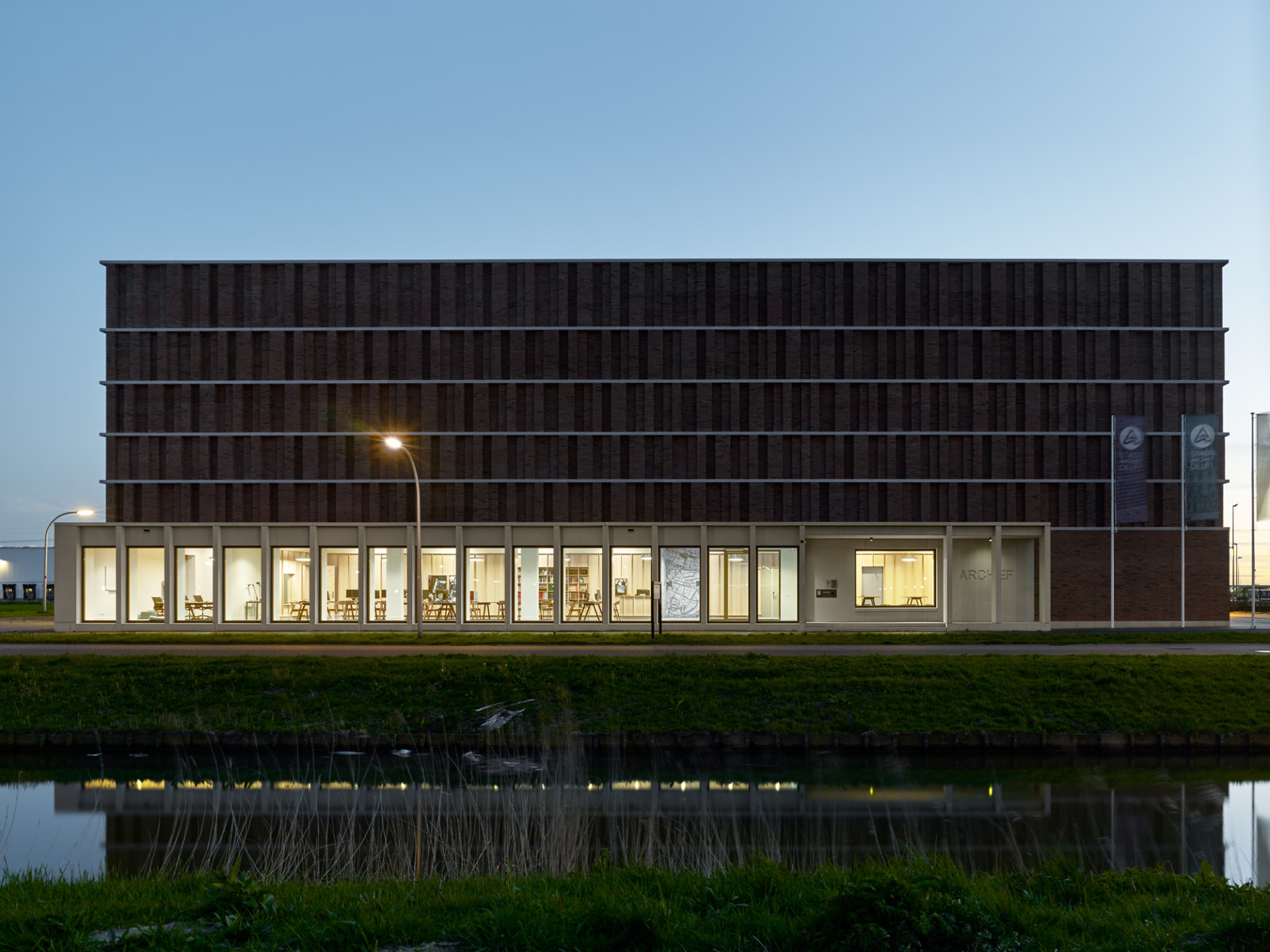 Původní archiv se dříve nacházel v centru města, ale jeho obsah kapacitu budovy přerostl a přestal vyhovovat technickým požadavkům instituce. Bylo tedy potřeba najít místo pro novou budovu. Zvolená parcela se nachází na okraji města v blízkosti dálnice, spojující Haag a Rotterdam, kde nová residenční čtvrť přechází v logistický park. Přesně na tomto rozmezí v čele úzkého parku leží budova městského archivu, kterou od něj odděluje vodní kanál. Architekti si zde kladli za cíl umístit a orientovat stavbu archivu tak, aby se stala plnohodnotnou součástí residenční čtvrti, nikoliv průmyslového areálu. Mimo vlastního archivu města Delft budova obsahuje i archivy okolních obcí.